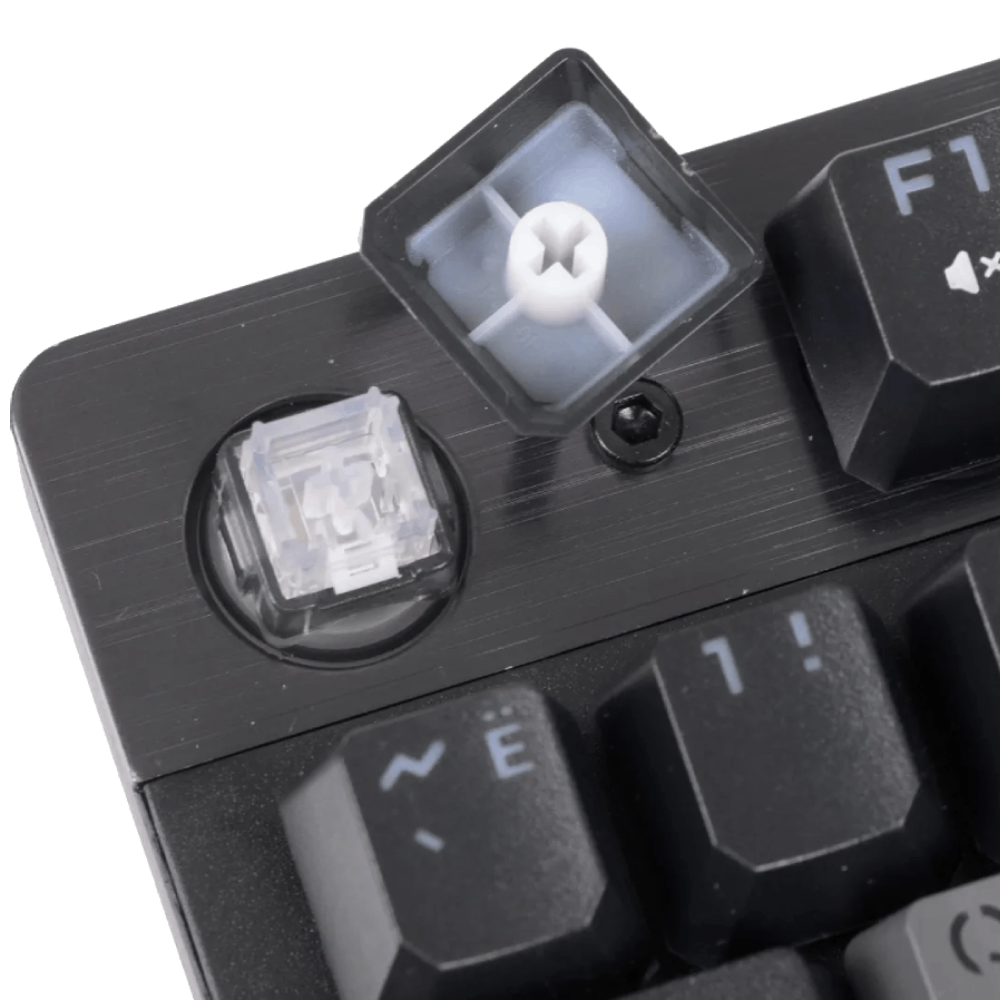 Инновационный запатентованный механическо-мембранный переключатель Mecha-Like Switch выполнен с использованием механизма переключателя LK (Light Strike). Он обеспечивает тактильный отклик как у механической клавиши и мягкий ход. Это дает ощущение на 95% схожее с использованием механической клавиатуры.