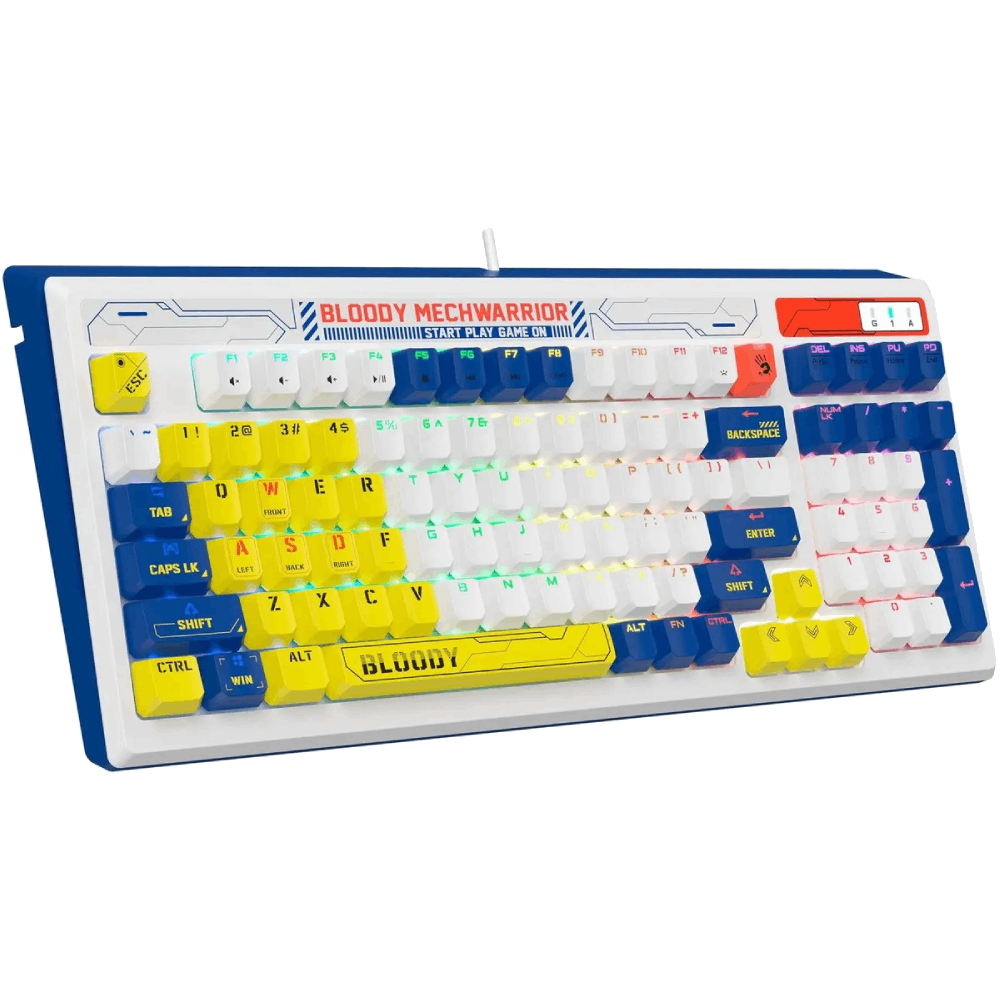Большинство кейкапов для игровых клавиатур изготовлены из материала PBT (полибутилентерефталат), благодаря его долговечности. Кейкапы из PBT от Bloody имеют малый вес и быстро возвращаются в исходное положение во время игры.