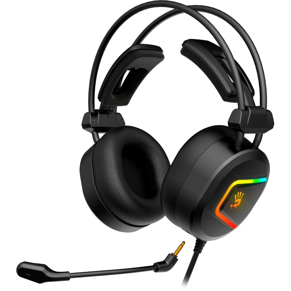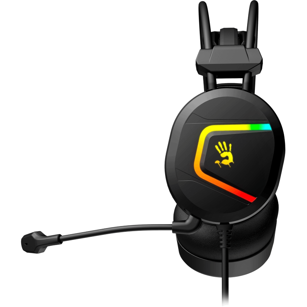 Гарнитура A4Tech Bloody MC750 - это отличный выбор для геймерского сетапа, ведь в ней есть всё, что может понадобиться геймеру от наушников: комфортная посадка, хорошее качество звука, приятный дизайн, виртуальный 7.1, встроенный микрофон, активное шумоподавление и подсветка RGB.