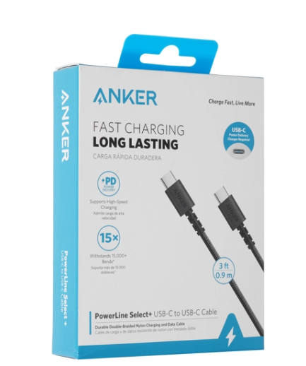Кабель круглый Anker PowerLine Select+ USB C to USB C 0,9 м Black с поддержкой стандарта Power Delivery станет надежным помощником как для подзарядки портативных устройств, так и для синхронизации. Поддержка выходной мощности 60 Вт обеспечивает быстрый процесс восстановления заряда подключенного устройства. Усиленная конструкция с двойной нейлоновой оплеткой и стыковыми соединениями с лазерной сваркой отличается повышенной стойкостью к механическим повреждениям. Из других особенностей универсального кабеля Anker отмечаются металлический корпус разъемов и длина 0.9 м.