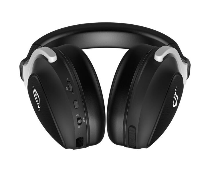 Беспроводная игровая гарнитура: малый вес, интерфейсы 2,4 ГГц и Bluetooth, 50-миллиметровые динамики ASUS Essence, микрофоны с технологиями формирования луча и интеллектуального шумоподавления, совместимость с разными платформами (ПК, Mac, PlayStation 5, Nintendo Switch)