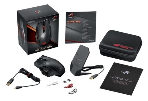 Игровая мышь с двумя интерфейсами, проводным USB и беспроводным 2,4 ГГц: магнитная зарядная станция, 12 программируемых кнопок, сенсор ROG с чувствительностью 19000 точек/дюйм, микропереключатели ROG с возможностью замены, кабель ROG Paracord и синхронизируемая подсветка Aura