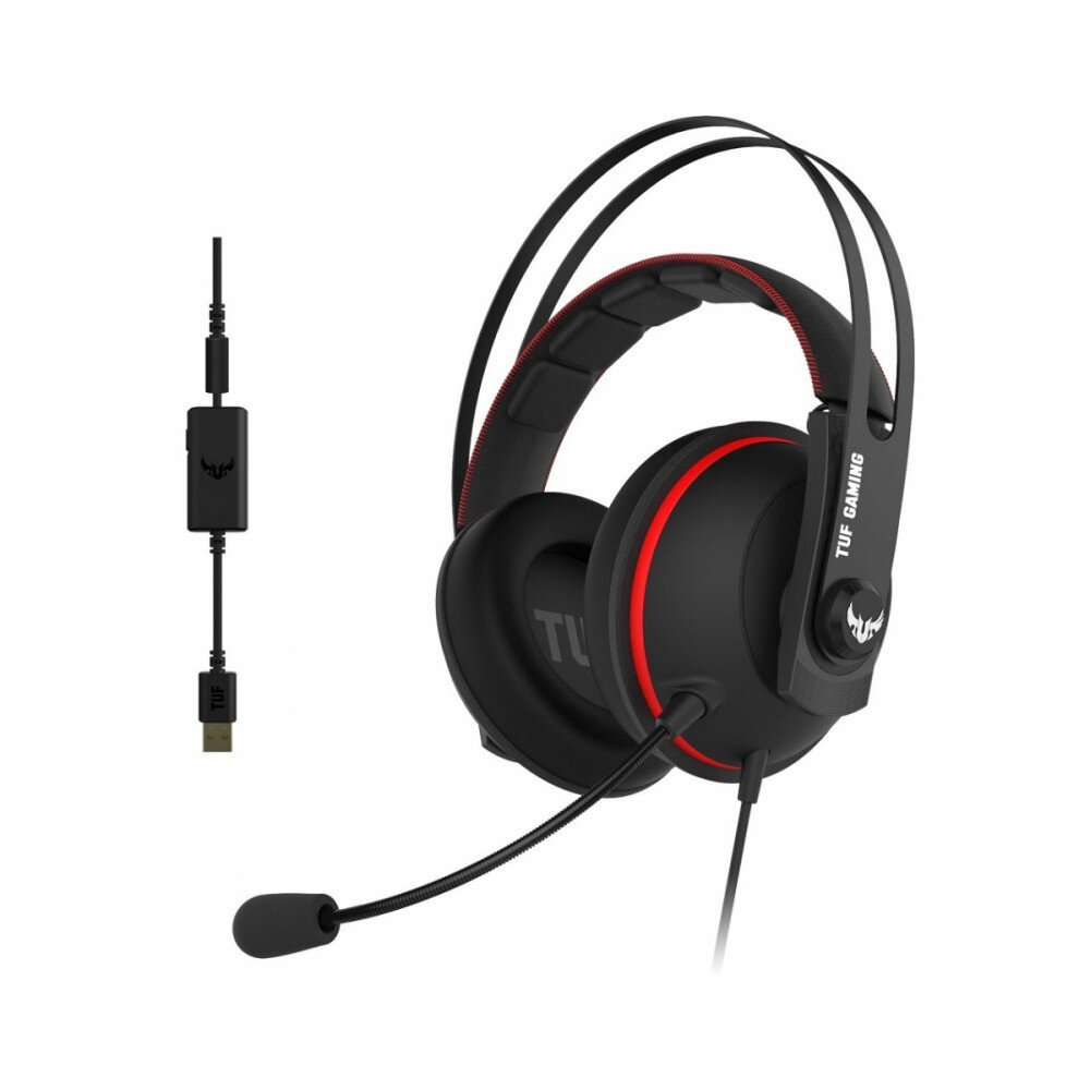 ASUS TUF Gaming H7 Red - игровая гарнитура для ПК и PS4 с прочным оголовьем из нержавеющей стали, мягкими амбушюрами и поддержкой виртуального пространственного звука в формате 7.1.