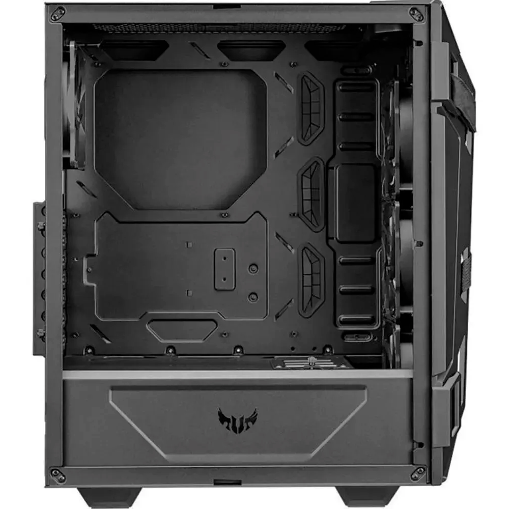 ASUS TUF Gaming GT301 – компактный корпус Mid-Tower для плат форм-фактора ATX: боковая панель из закаленного стекла, ячеистая передняя панель, 120-миллиметровые вентиляторы с адресуемой подсветкой Aura, крючок для гарнитуры и совместимость с 360-миллиметровыми радиаторами.
