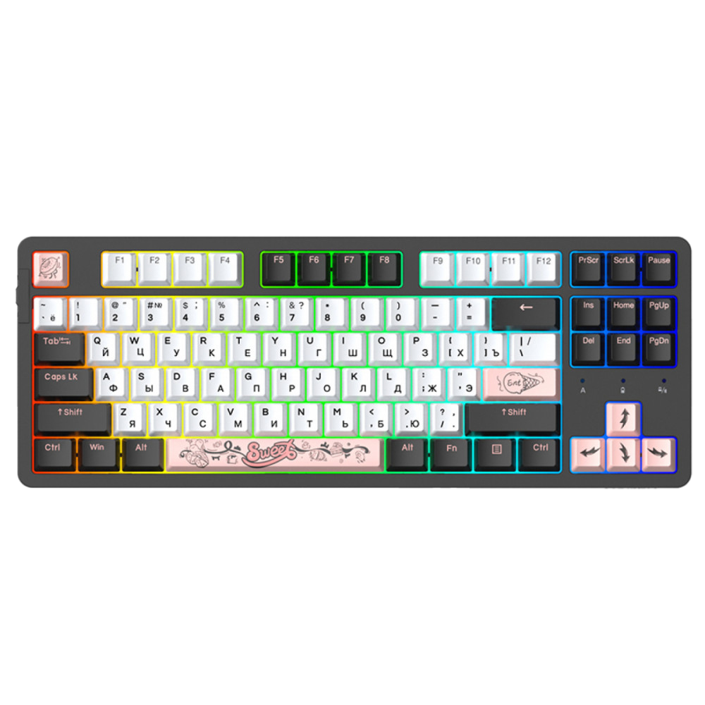 Функция No Key Rollover позволяет нажимать все клавиши одновременно без конфликтов, что делает A87X TKL надежной помощницей в ожесточенном киберспорте.