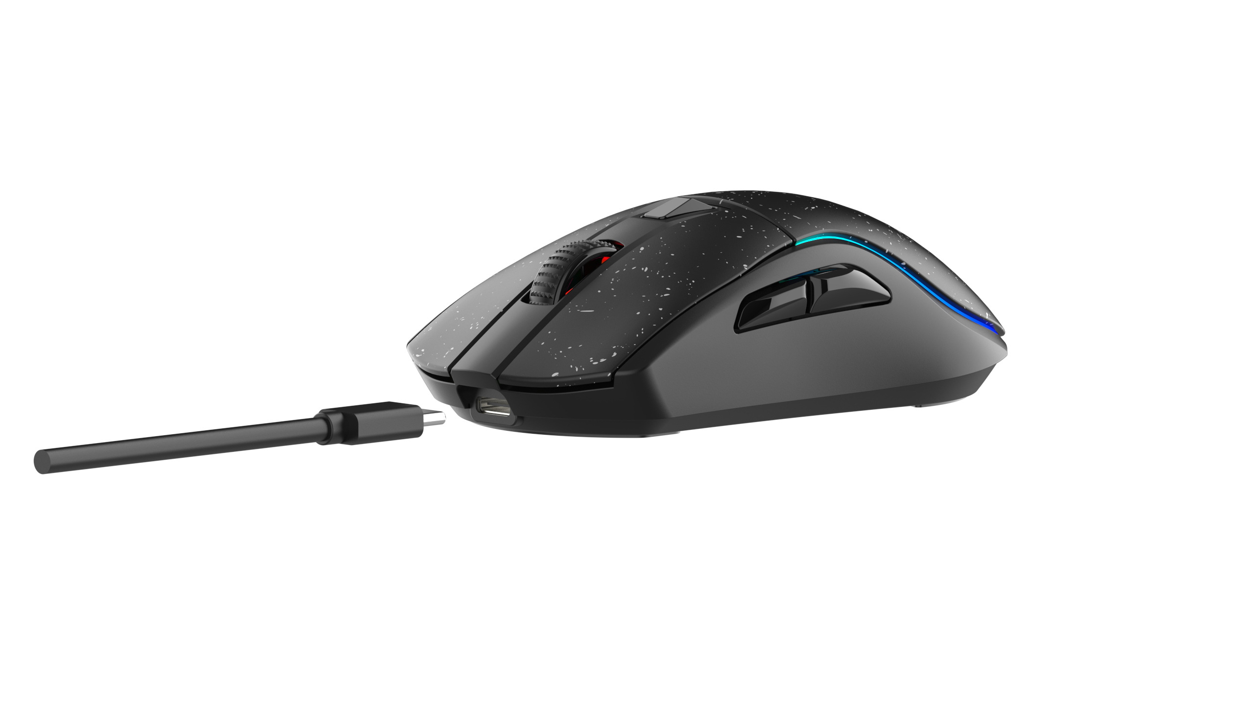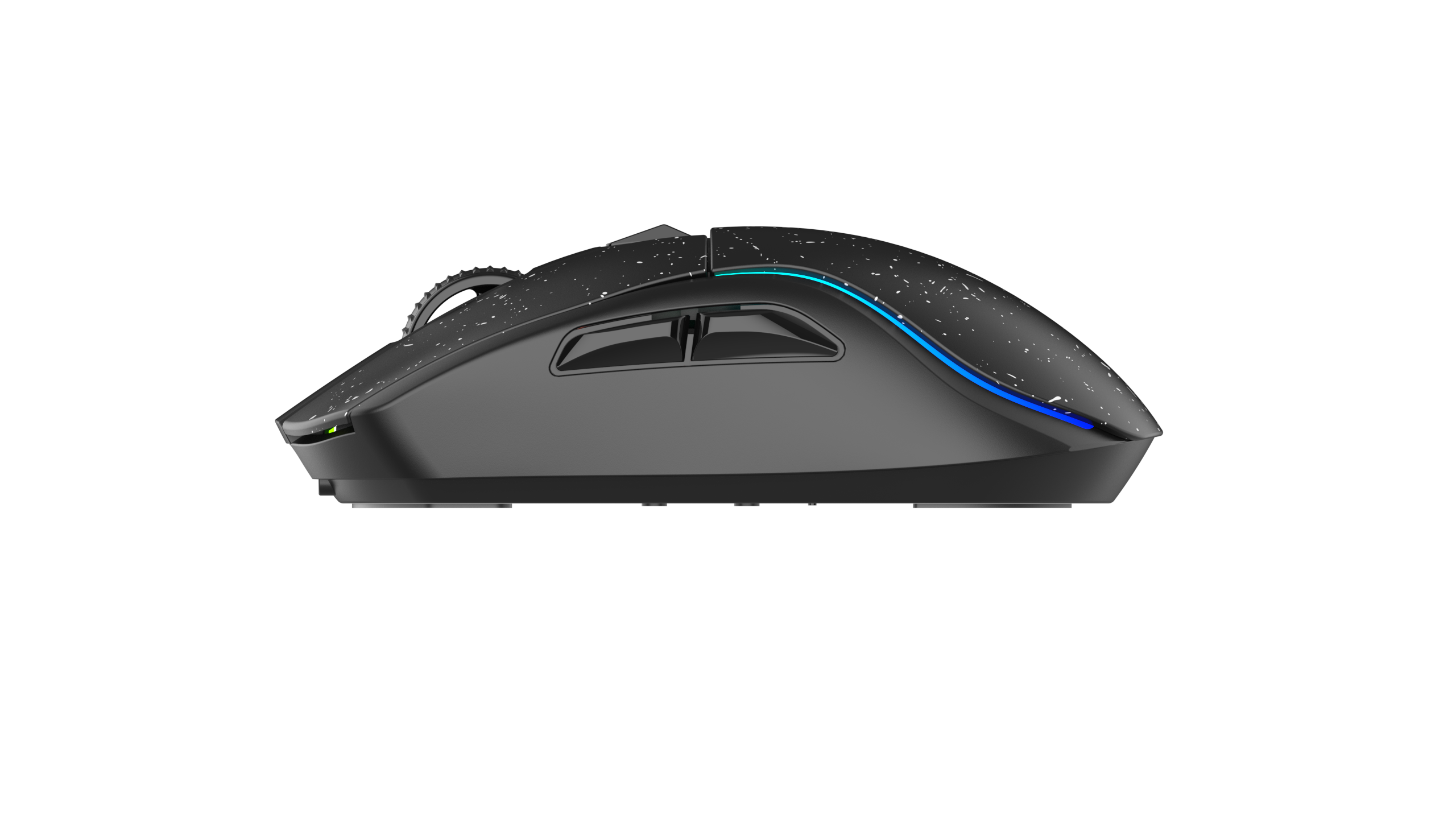 Симметричный эргономичный дизайн обеспечивает идеальную посадку, хорошее чувство мыши, а поверхность, имитирующая кожу, делает управление более стабильным и плавным.