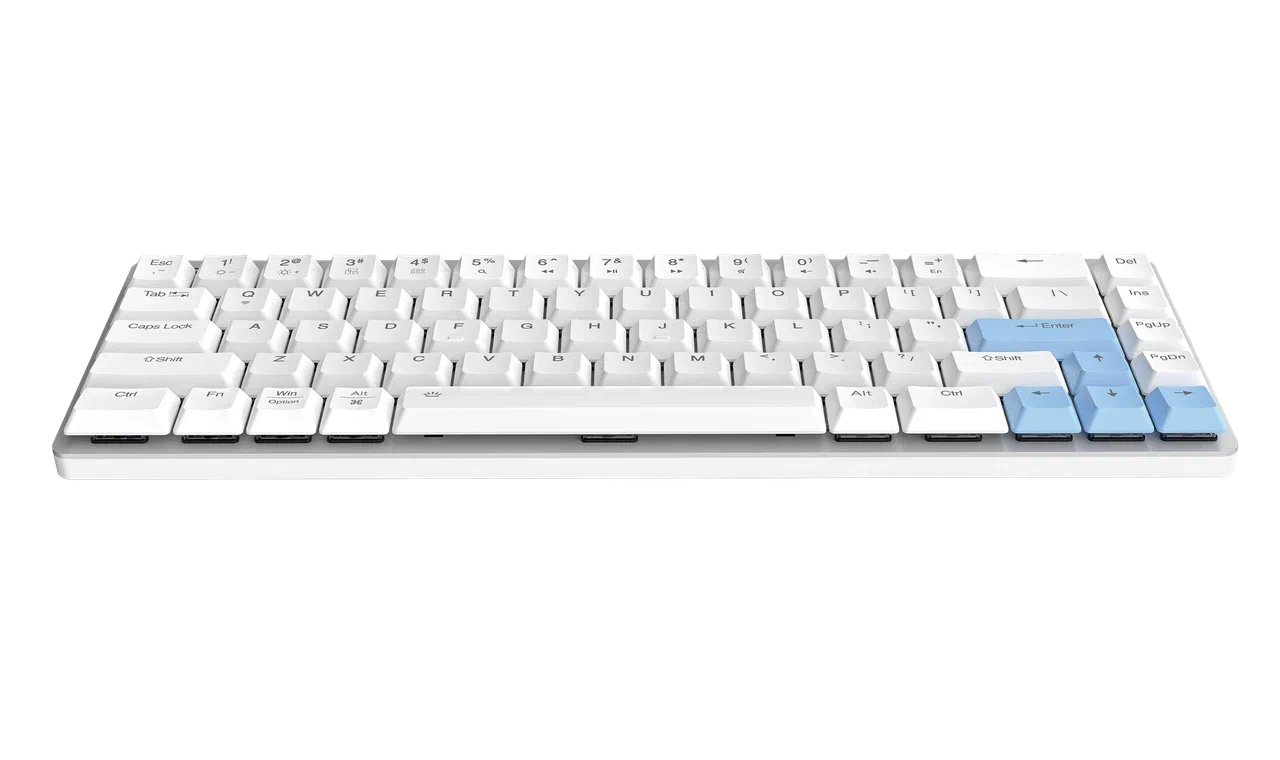 Данная компактная клавиатура с двумя режимами работы: беспроводной и проводной отлично подойдёт для работы с компьютером на любой ОС. Низкопрофильные клавиши kailh с ходом 3мм позволяют минимизировать усилия для нажатия и тем самым увеличить комфорт от использования клавиатуры. Встроенная батарея позволяет клавиатуре работать до 20 дней (без подсветки) и до 7 дней (с подсветкой). Все большие клавиши имеют стабилизаторы, а железная пластина сделана так чтобы нажатие больших клавиш происходило более плавно.