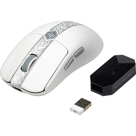 Синхронизация мыши производится через радиоканал или USB-кабель. В пластиковом корпусе спрятан оптический светодиодный датчик PixArt PAW3950 с разрешением 30000 dpi.