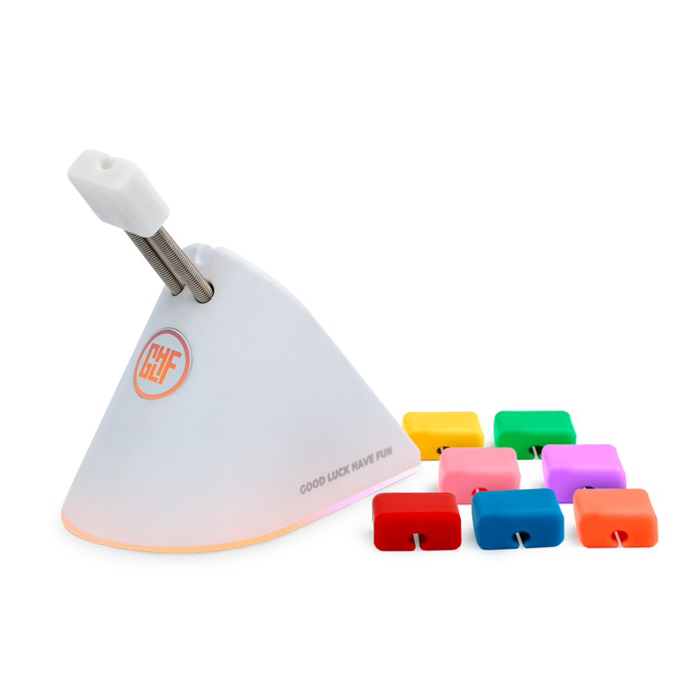 Сделайте ваши ощущения от управления мышью более плавными с удобным держателем провода для мыши от GLHF! А восемь сменных клипс на штанге позволят подстроить дизайн под цвет сетапа или ваше настроение. Цвета сменных колпачков полностью совпадают с 8 основными цветами настраиваемой RGB-подсветки.