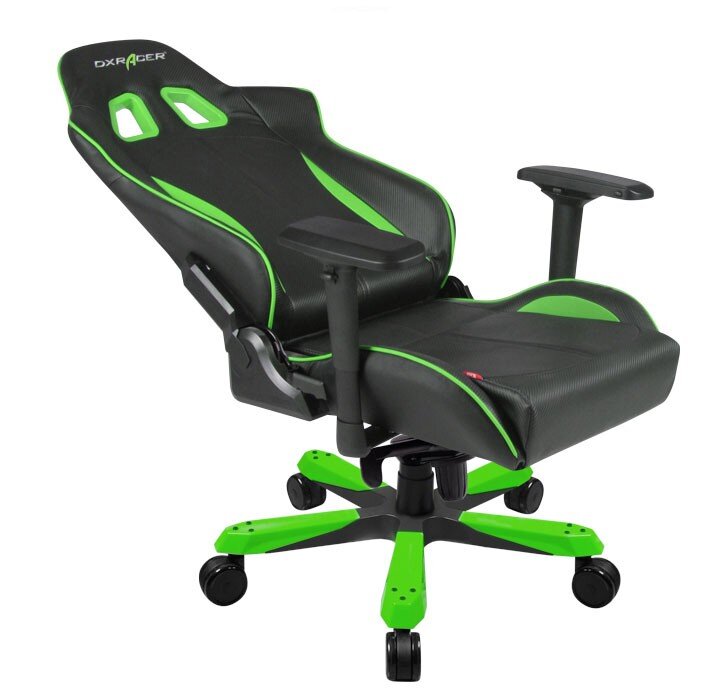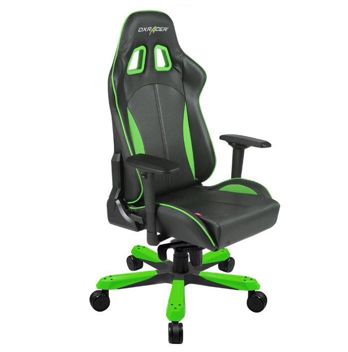 OH/KS06/NE – компьютерное кресло King серии в черно-зеленом цвете, обивка которого выполнена из эко-кожи с карбоновыми вставками. Подлокотники кресла обладают возможностью регулировки в четырех плоскостях. Широкая алюминиевая крестовина в основании и усиленный металлический каркас позволяют креслу выдержать высокие нагрузки.