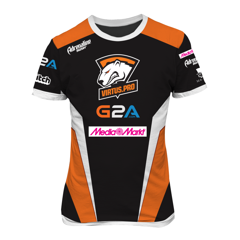 Джерси Virtus.pro с логотипом киберспортивной команды станет талисманом на профессиональных турнир. Футболка сделана из легкой ткани, которая практически не чувствуется на теле. Модель выполнена в черном цвете и декорирована ярким геометрическим рисунком. На груди расположен контрастный логотип, нанесенный краской высокого качества. Вещь сшита из прочных материалов, способна перенести многократные стирки. Материал практически не мнется. Джерси с логотипом Virtus.pro идеально подойдет для активного образа жизни.