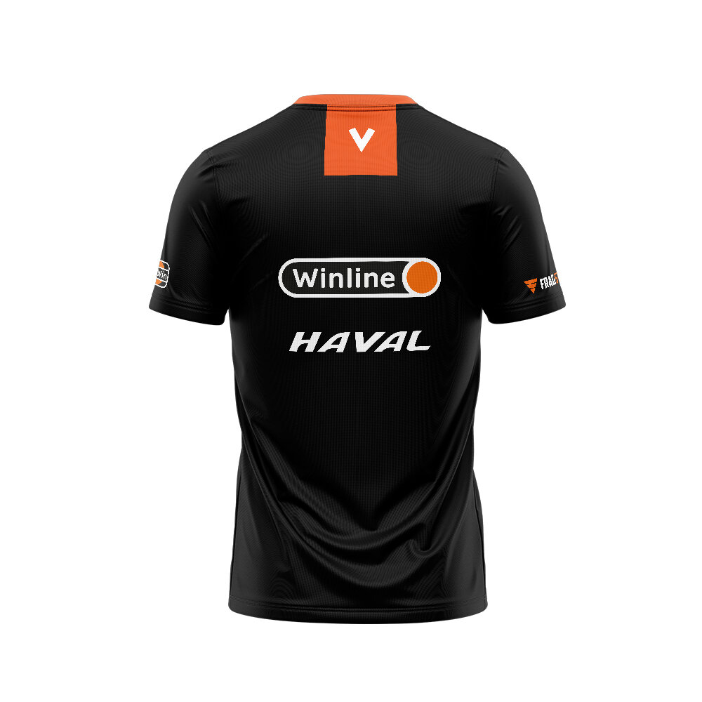 Джерси выполнено в черном цвете с яркими элементами: на рукавах, груди и спине расположены логотипы команды и спонсоров. Спереди футболка украшена принтом когтей и тканевой лентой с логотипом команды снизу.