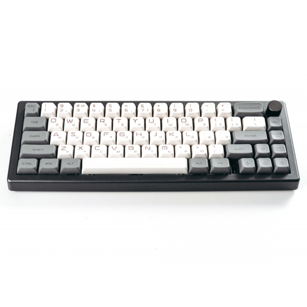 Комплектные кейкапы выполнены из PBT пластика, что позволяет им дольше сохранять свой первозданный вид в отличии от ABS кейкапов.