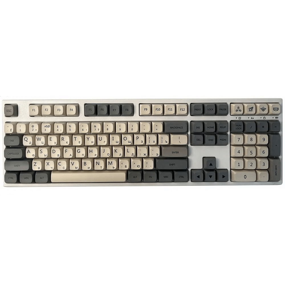 Комплектные кейкапы выполнены из PBT пластика, что позволяет им дольше сохранять свой первозданный вид в отличии от ABS кейкапов.