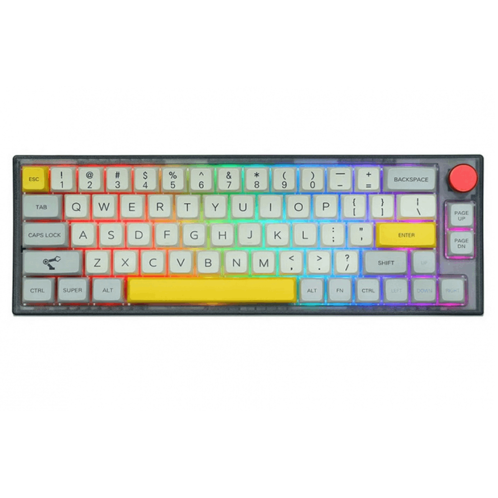 Комплектные кейкапы выполнены из PBT пластика, что позволяет им дольше сохранять свой первозданный вид в отличии от ABS кейкапов.