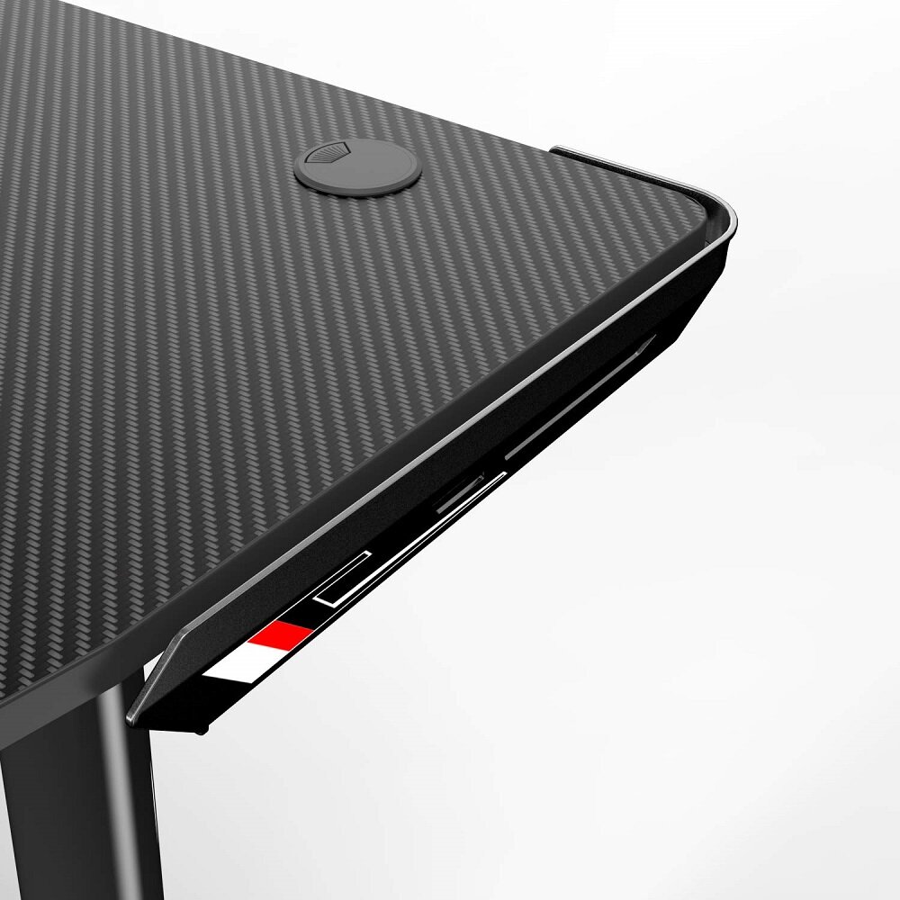 Eureka i1 Gaming Computer Desk - идеальное сочетание игрового стола и офисного стола. Играете ли вы или делаете домашнюю работу, это отличный стол для вас по доступной цене. Eureka i1 поставляется с супер гладким рабочим столом из углеродного волокна, идеально подходящим для игр или письма. Игровой стол i1 включает в себя большой коврик для мыши, кабельную систему и стильное устройство, разработанное для светодиодных лент RGB, если вы хотите получить максимальную отдачу от игрового процесса. Светодиодный свет не входит в комплект.