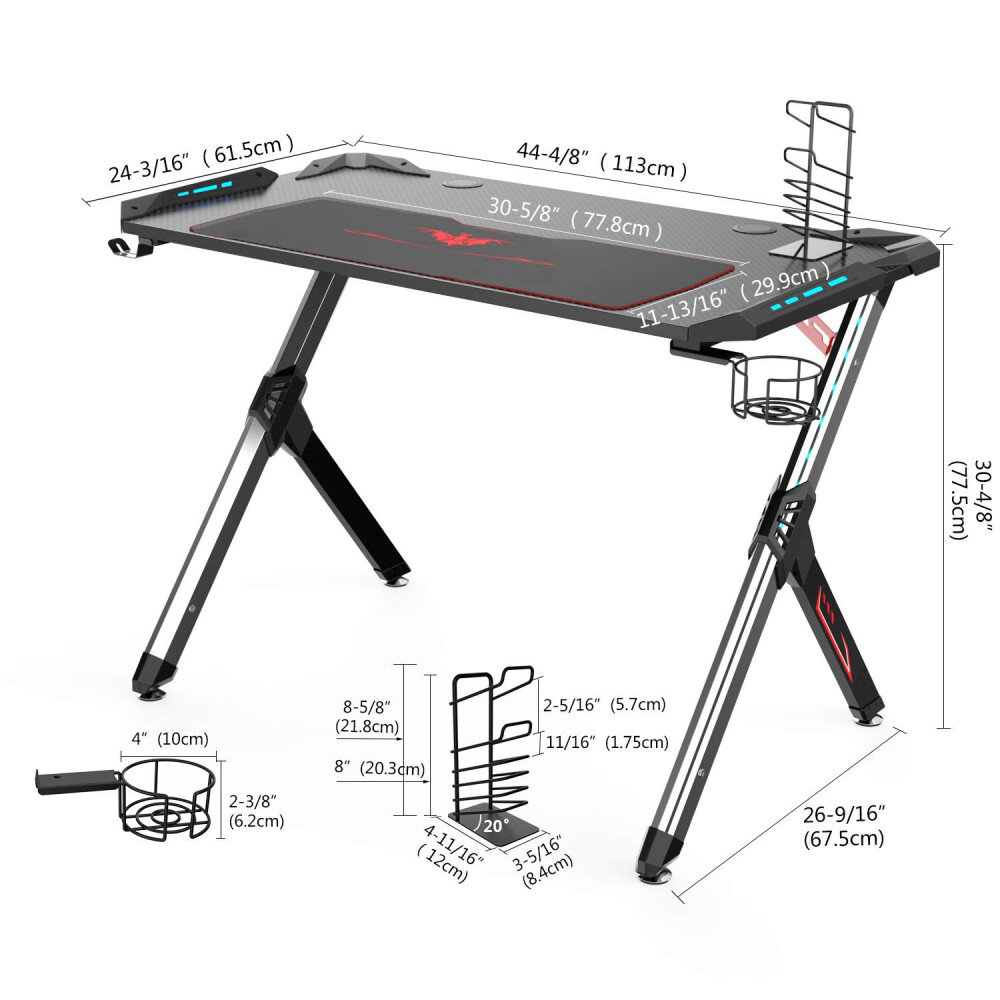 Остановите игру на старом скучном столе и войдите в игру с игровым столом Eureka R1-S. R1-S был разработан геймерами для геймеров. Вы не найдете лучшего игрового стола на рынке сегодня. Оснащен такими функциями, как освещение R G B , рабочий стол с текстурой из углеродного волокна, крючок для наушников, держатель для чашки и подставка для контроллера.