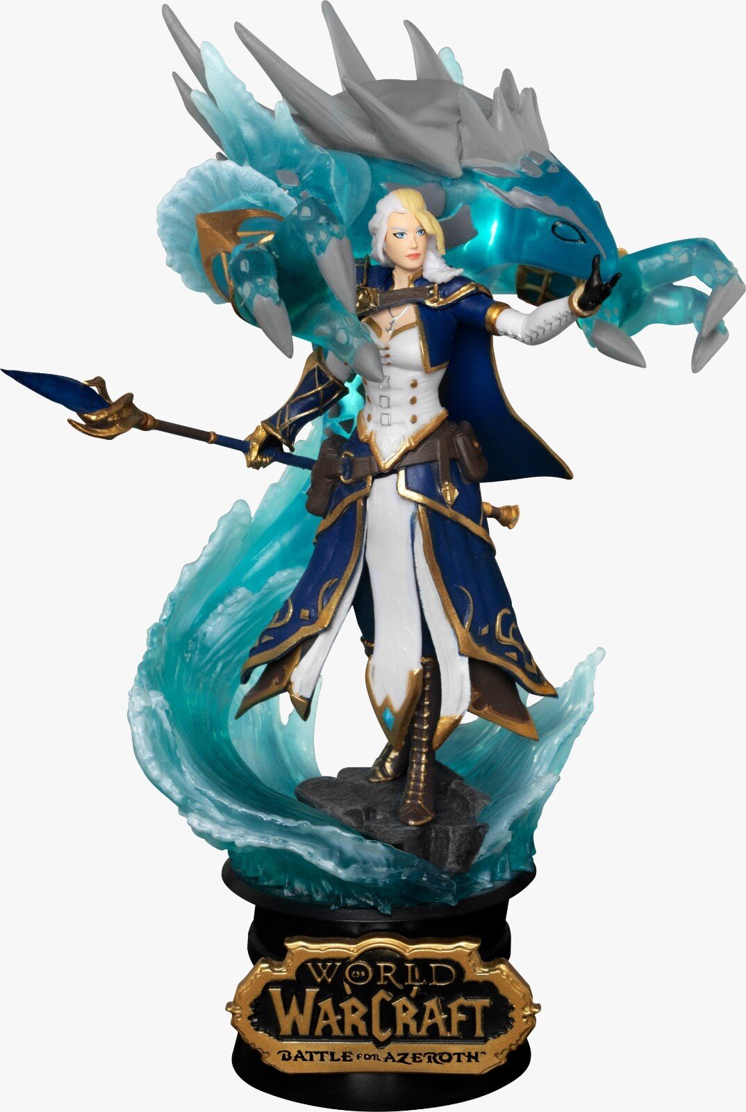 С акцентом на мельчайшие детали персонаж полон решимости и воли к успеху! Каждая часть костюма Джайны деликатно воссоздана, а главный элемент воды прямо за ней с эффектом полупрозрачного синего слоя.