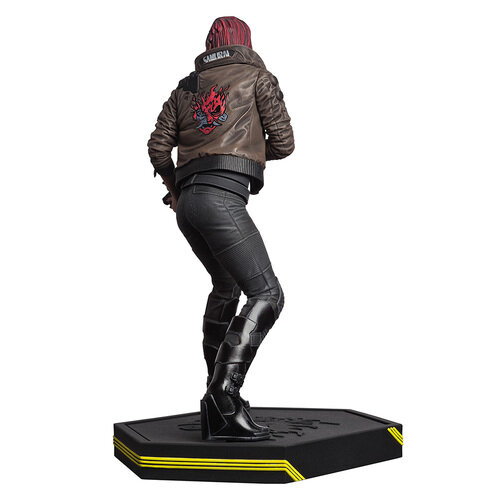 Фигурка высотой 21 сантиметр отличается высокой степенью детализации, вплоть до потёртостей куртки с эмблемой группы Samurai на спине и блестящих высоких ботинок. Выполненная из качественного ПВХ, фигурка стоит на тематической подставке с тем же логотипом Samurai, таком же как на куртке главной героини игры Cyberpunk 2077.