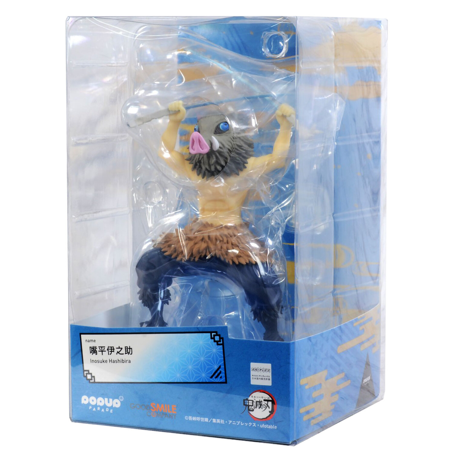 Фигурка из серии POP UP PARADE выполнена по мотивам аниме и манги "Клинок, рассекающий демонов" (Demon Slayer: Kimetsu no Yaiba) и изображает Иноске Хашибиру - охотника на демонов, путешествующего в компании Танджиро Камадо. Иноске невероятно вспыльчивый и опрометчивый, поэтому он часто влезает в драку с более сильным противником, не задумываясь о последствиях. Он любит соревноваться и часто пытается спровоцировать своих товарищей - Танджиро и Зеницу - на поединок. Фигурка изображает Иноске в его классическом виде - с голым торсом и маской кабана на голове. Зазубренные клинки Иноске подняты над головой в боевой стойке.