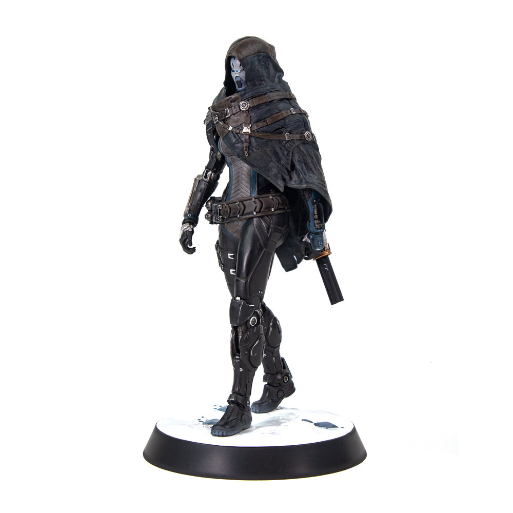 Эта коллекционная фигурка Экзо-Незнакомки из игры Destiny 2 была специально к дополнению Destiny 2 Beyond Light. Все детали фигурки окрашены вручную, а сама она отличается удивительной реалистичностью. В фигурке точно отображено оружие персонажа и ремень для оружия, а также плащ и отпечатки ног на тематической снежной подставке. Высота фигурки 25 сантиметров, а диаметр основания - 13,8 см.