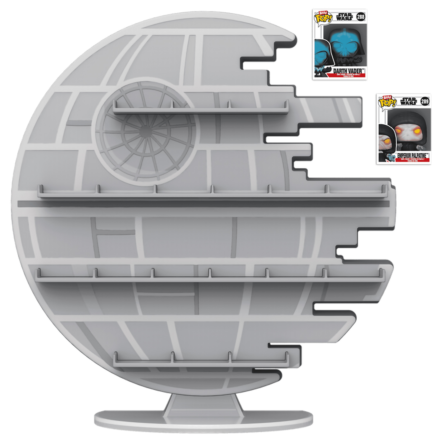 Расширьте свою коллекцию Star Wars™ с помощью дисплея Bitty POP! Звезда Смерти™! Этот коллекционный предмет, напоминающий культовую космическую станцию, уничтожающую планеты, обязательно станет звездным дополнением к вашей линейке. Этот эксклюзивный коллекционный предмет включает в себя Bitty POP! Император Палпатин™ и Bitty POP! Дарт Вейдер™ (электрифицированный). Коллекционные предметы Bitty POP! упакованы в жесткие акриловые футляры со съемными нижними крышками. Съемные нижние крышки также служат акриловыми основаниями, к которым приклеиваются коллекционные предметы Bitty POP!.