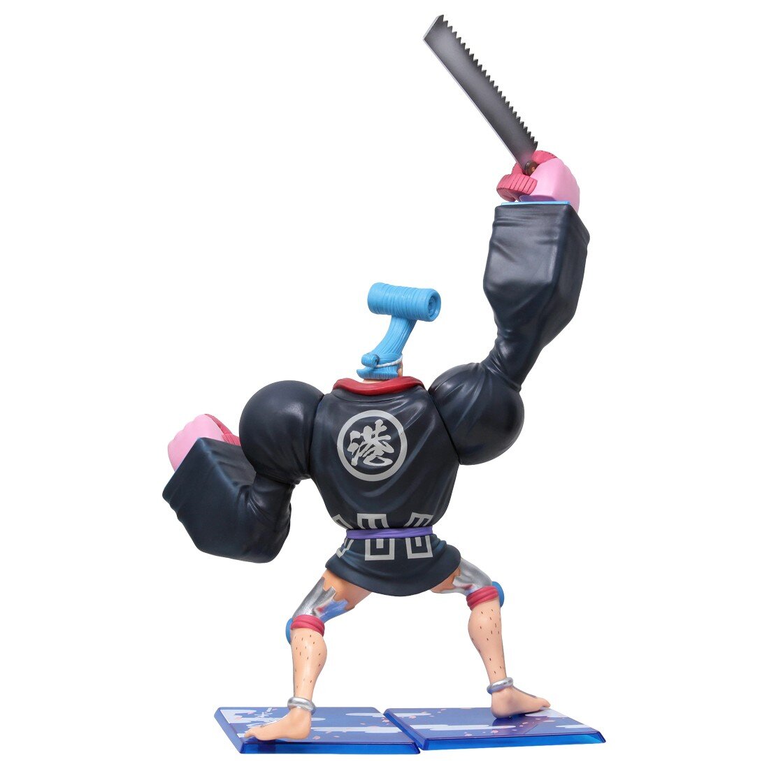 Фигурка изображает одного из персонажей One Piece - Фрэнки - в костюме страны Вано. Фрэнки — пират и корабельный плотник в команде пиратов Соломенной Шляпы. Он является 36-летним киборгом из Water 7 и впервые появляется в сюжете как лидер Клана Фрэнки, группы корабельных демонтажников. Его настоящее имя — Катти Флам, но он отказался от него по просьбе Айсберга, чтобы скрыть свою личность, и стал жить под псевдонимом. Первоначально Фрэнки и его последователи были представлены в как антагонисты Мугивар, но обстоятельства заставили их стать союзниками.