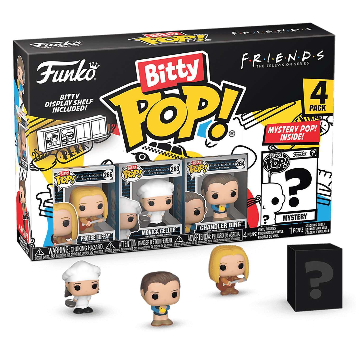 Bitty Pop! упакованы в твердые акриловые футляры со съемными нижними крышками. Съемные нижние крышки служат одновременно акриловой основой, к которой приклеены фигурки. Сортируйте и раскладывайте свои Bitty Pop! с помощью прилагаемой витрины. Акриловые витрины можно складывать в штабель и вмещать по четыре фигурки Bitty Pop! в каждый ряд.