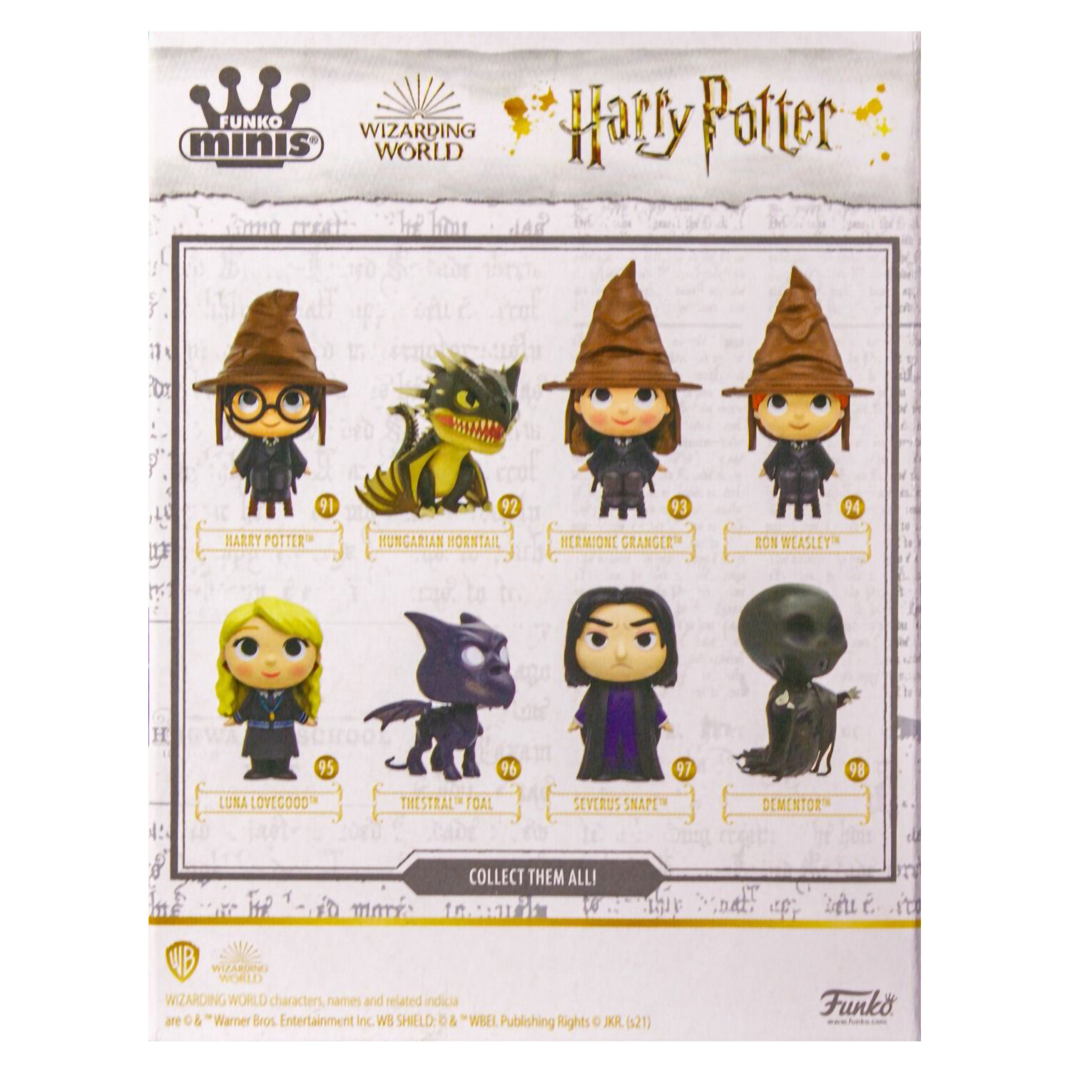 Funko Minis - это серия милых небольших фигурок по любимой вселенной! В коллекцию Harry Potter Funko Mini Vinyl входят восемь фигурок: Гарри Поттер, Рон Уизли, Гермиона Грейнджер, Северус Снейп, Луна Лавгуд, Венгерская Хвосторога, дементор и фестрал. Покупателю достанется рандомная фигурка из набора.