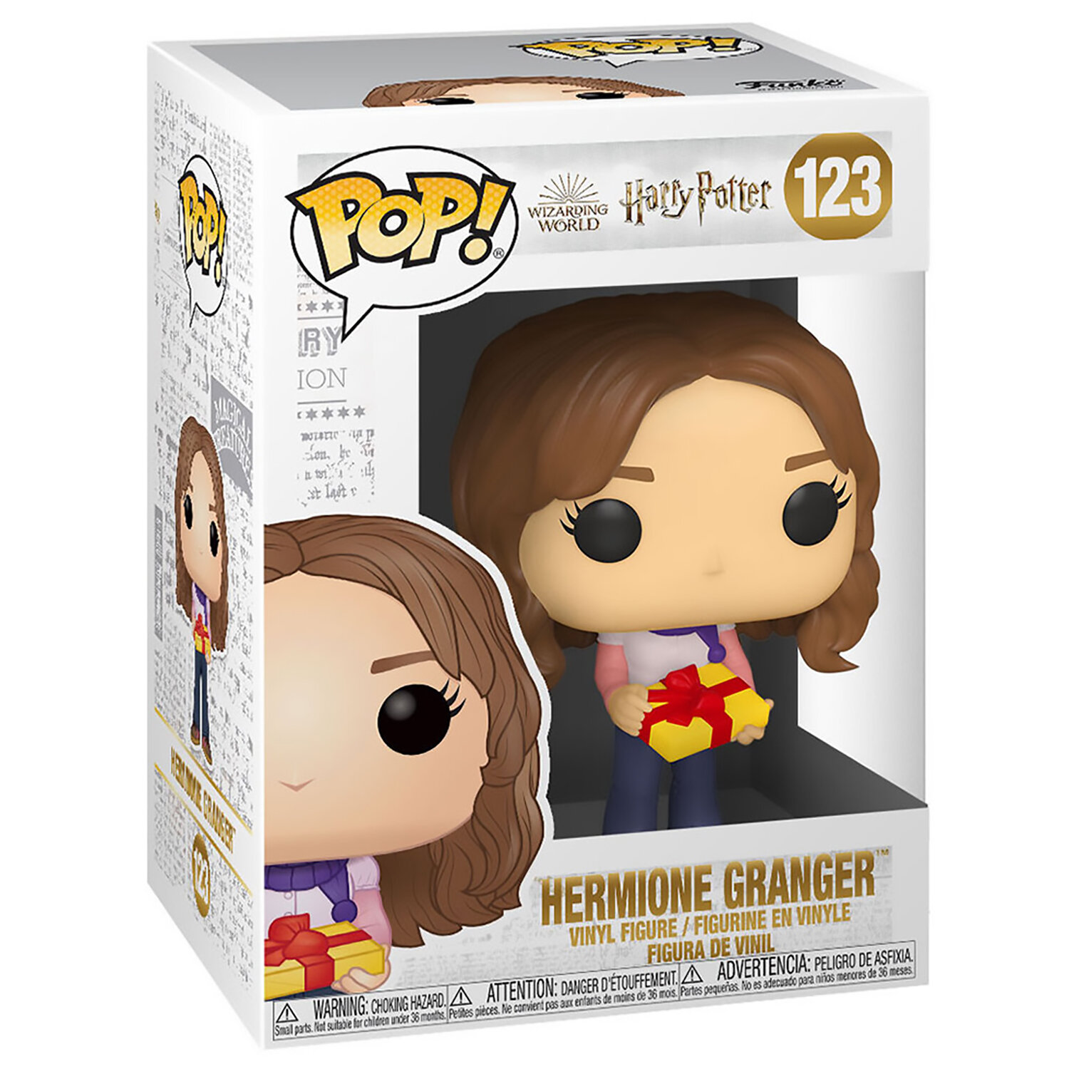 Фигурка Funko из серии POP! изображает одну из главных героев Гермиону Грейнджер с подарком на Рождество в руках.