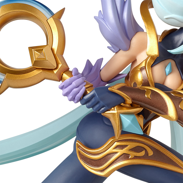 Фигурка по мотивам популярной MOBA посвящена Ривен – одному из самых опасных бойцов. Она занимает в высоту 24,4 см и сделана из ПВХ, радуя поклонников высокой детализацией. Создатели воплотили образ Предвестницы зари, которая летит навстречу противнику, готовая рассечь оппонента клинком.