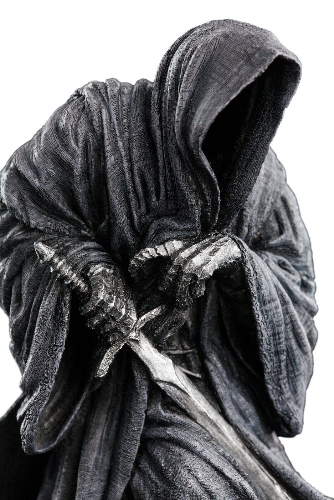 Фигурка назгула высотой 15 сантиметров выполнена из прочного полистоуна и окрашена вручную. Созданная с поразительной детализацией теми же художниками и мастерами, которые работали над фильмами трилогии "Властелина колец", эта завораживающая статуэтка Назгула расположена на тяжёлой подставке.