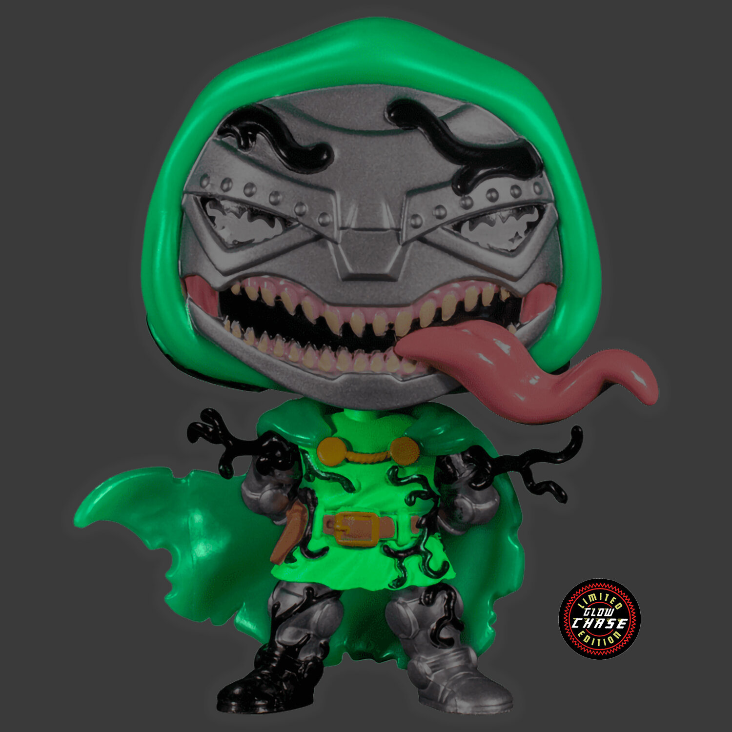 Фигурка Funko из серии POP! выполнена по мотивам вселенной комиксов Marvel. Она изображает одного из главных злодеев вселенной Доктора Дума, захваченного симбиотом Веномом.