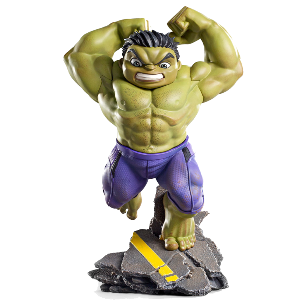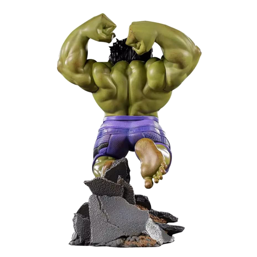 Фигурка от Iron Studios изображает Халка из вселенной Marvel, готовящегося к прыжку. Его ноги упираются в стилизованную подставку в виде обломков асфальта, который когда-то был городской дорогой. Его сжатые кулаки занесены над головой, чтобы сделать то, что у Халка получается лучше всего - КРУШИТЬ.