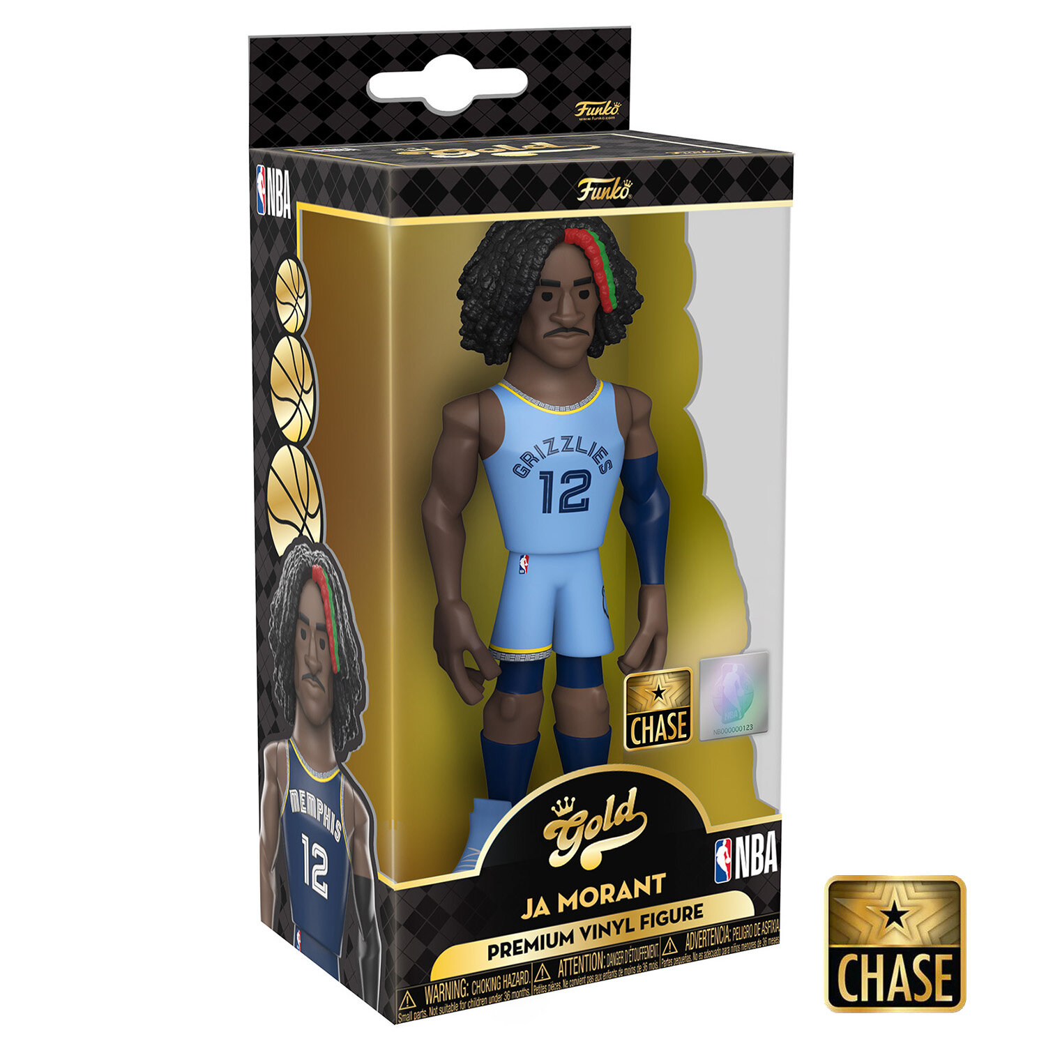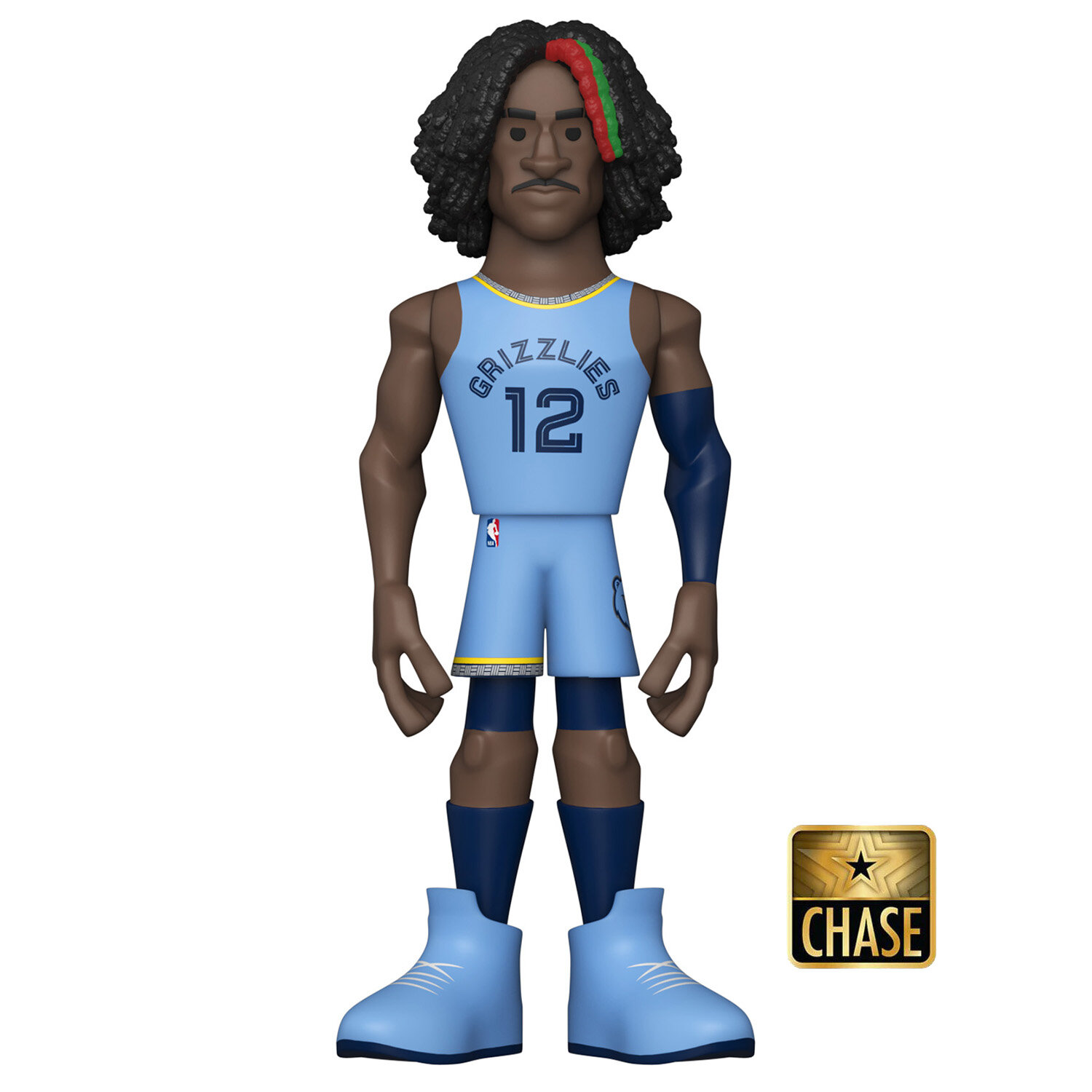 В серии фигурок Funko Vinyl Gold любимые герои и спортсмены будут воплощены в качестве стилизованных фигурок высотой около 13 сантиметров. Эта фигурка изображает баскетболиста команды Memphis Grizzlies Джа Моранта в домашней форме его клуба. Chase-версия фигурки изображает Джа в выездной голубой форме Grizzlies.