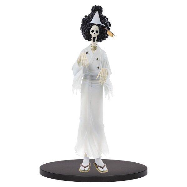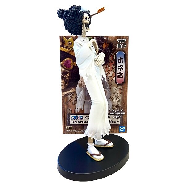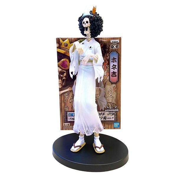 Фигурка ONE PIECE DXF THE GRANDLINE MEN Wanokuni Vol.7 (B:Brook) выполнена по мотивам вселенной One Piece. "Соул Кинг" Брук — пират и музыкант, член команды пиратов Соломенной Шляпы. Он живой скелет, с которым Соломенные Шляпы встретились на борту корабля-призрака, дрейфующего во Флорианском Треугольнике. Брук съел Дьявольский плод Ёми Ёми, благодаря которому воскрес после своей смерти. Его мечта — вернуться к своему накама, Лабуну. Он является девятым членом команды Соломенной Шляпы и восьмым, кто присоединился к Луффи, став при этом старейшим пиратом в команде. Также, он второй мечник на борту корабля (первым стал Зоро) и долгожданный музыкант, которого Луффи хотел в команду ещё в самом начале своего путешествия. О-Тама - девочка из региона Кури страны Вано. Она плетёт соломенные шляпы каса, а также является куноити на обучении.