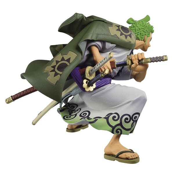 Фигурка ONE PIECE KING OF ARTIST The Roronoa Zoro Wanokuni выполнена в виде одного из персонажей вселенной One Piece. По сюжету Зоро является первым, кто присоединяется к пиратской команде Манки Д. Луффи, главного героя сериала, после того, как он спасается от казни на базе Морского дозора. Зоро является вторым (вместе с Винсмоком Санджи) среди Пиратов Соломенной шляпы по силе после Луффи. Он является мастером меча и практикует свой Стиль трёх мечей, сражаясь тремя мечами одновременно. Цель Зоро — стать лучшим в мире фехтовальщиком.