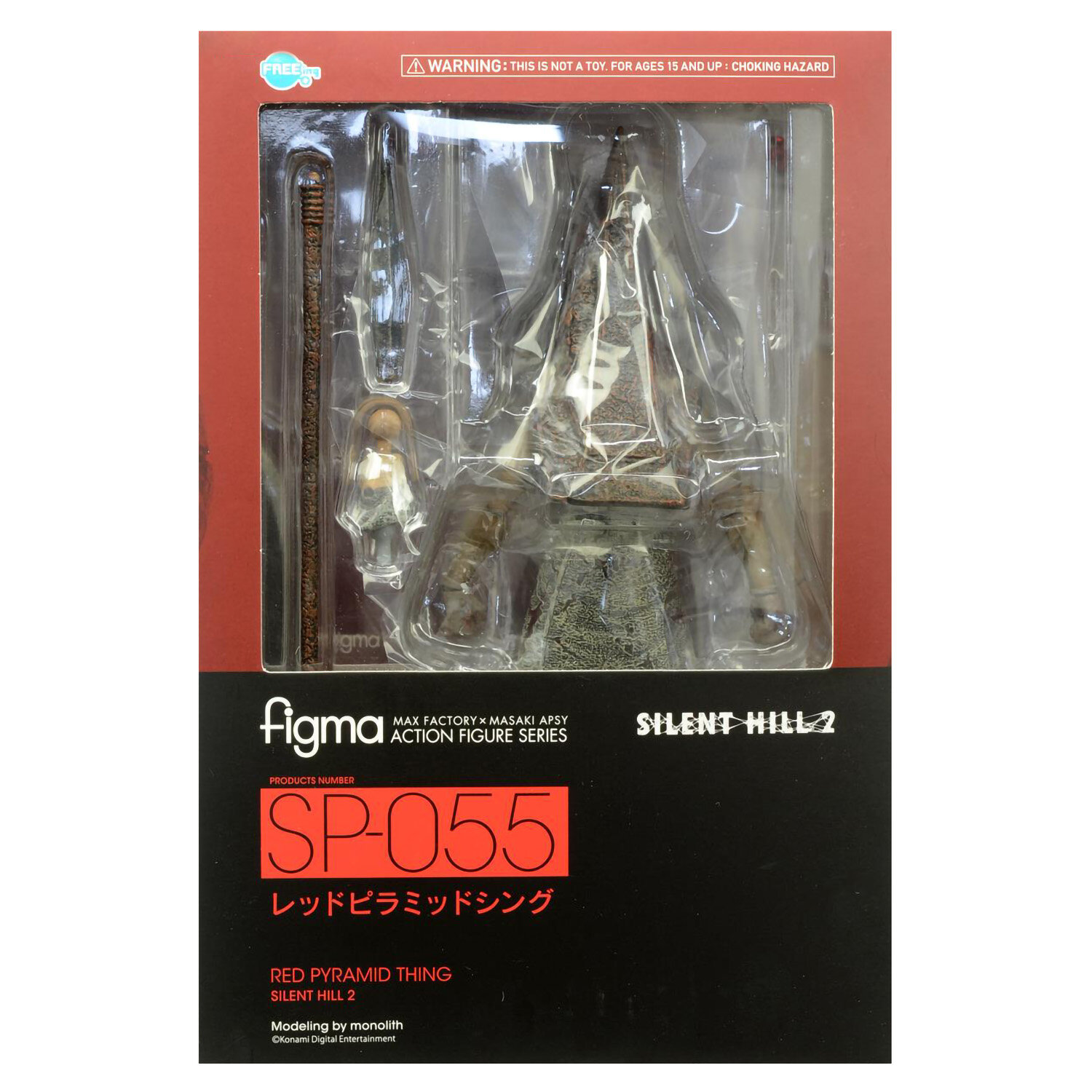 Фигурка из серии Figma является подвижной и может принимать разнообразные позы, а удобная шарнирная подставка позволит Пирамидоголовому сохранить равновесие в любом положении. В определенных местах используется гибкий пластик, позволяющий сохранить пропорции без ущерба для позы. Высота фигурки 20 сантиметров.