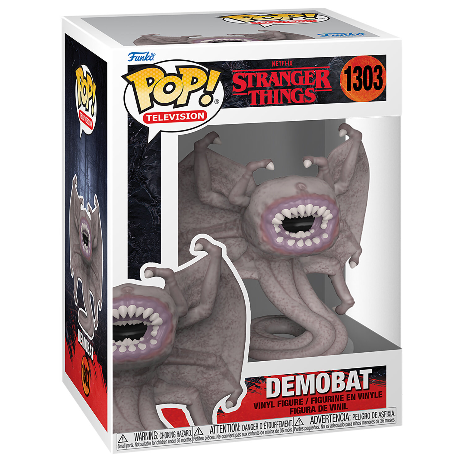 Фигурка Funko из серии POP! выполнена по мотивам сериала "Очень странные дела" (Stranger Things). Она изображает Летучего Вампина - хищное существо из параллельного мира (Изнанки).