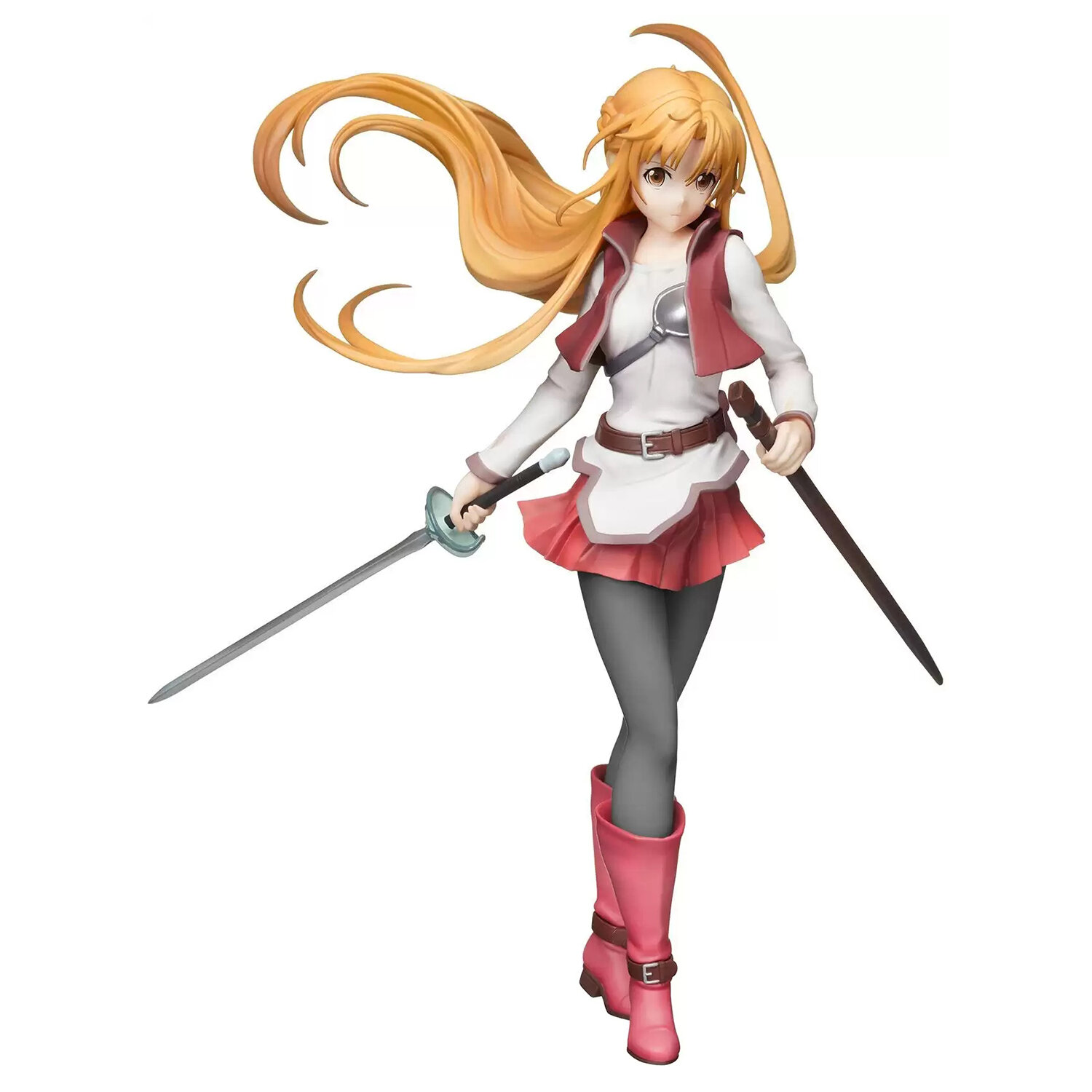 Асуна - главная героиня и напарница Кирито. Являлась сублидером в гильдии Рыцари крови в Старом Айнкраде. Её настоящее имя Юки Асуна. У неё длинные рыжевато-русые волосы и карие глаза, в SAO она носила красно-белую униформу, соответствующую её гильдии "Рыцари Крови", и была вооружена рапирой "Сияющий свет", изготовленной Лизбет.