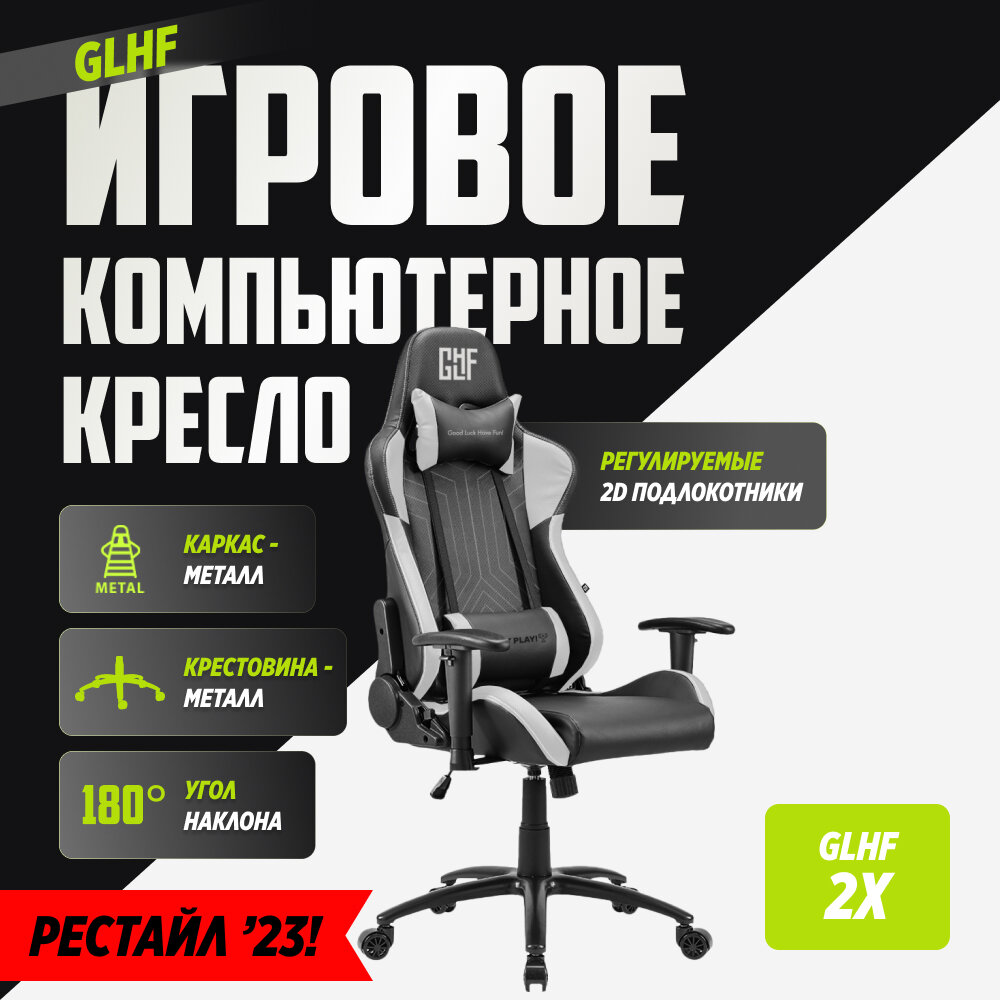 Кресло GLHF 2X создано для тех, кто хочет получить максимум от геймерского кресла за его цену. Оно сочетает в себе высокую эргономичность и комфорт, надёжные материалы и высокую прочность. Кресло оснащено 2D-подлокотниками, а благодаря газлифту 4-го класса максимальный вес, которое выдерживает кресло, достигает 150 кг.
