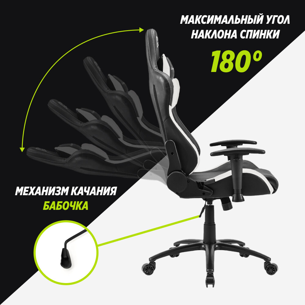 Спинка кресла должна плотно прилегать к спине и оказывать пользователю постоянную поддержку. Поэтому большую часть времени спинка будет находится в вертикальном положении или положении близком к нему. Угол наклона спинки кресла можно изменить, чтобы занять удобное положение, например, во время просмотра видео, а также в других случаях на усмотрение пользователя. Это важное и полезное свойство кресел, которым следует пользоваться разумно, не в ущерб здоровью. Угол наклона геймерских кресел GLHF 2X составляет 180 градусов, с возможностью фиксации положения спинки кресла под любым углом. GLHF 2X не заменит кровать, но позволит расслабится в те моменты, когда это нужно.