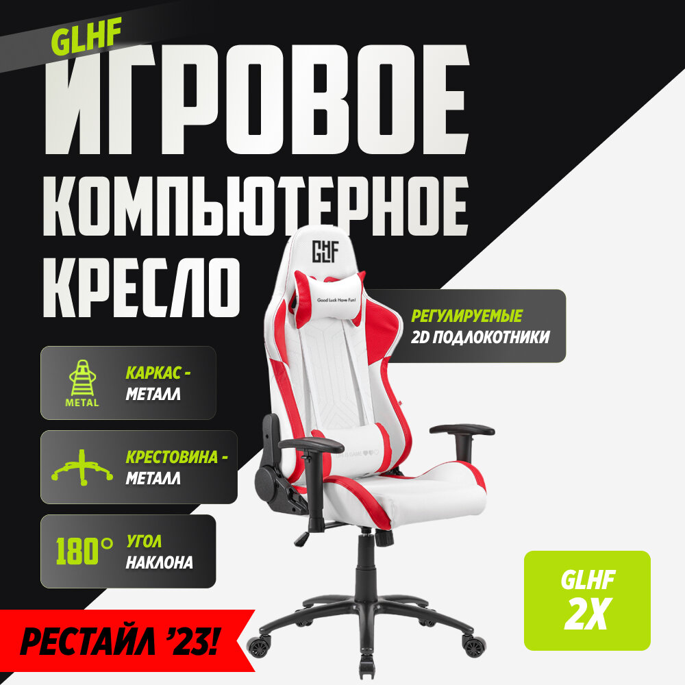 GLHF 2X создано для тех, кто хочет получить максимум от геймерского кресла за его цену. Оно сочетает в себе высокую эргономичность и комфорт, надёжные материалы и высокую прочность. Кресло оснащено 2D-подлокотниками, а благодаря газлифту 4-го класса максимальный вес, которое выдерживает кресло, достигает 150 кг.