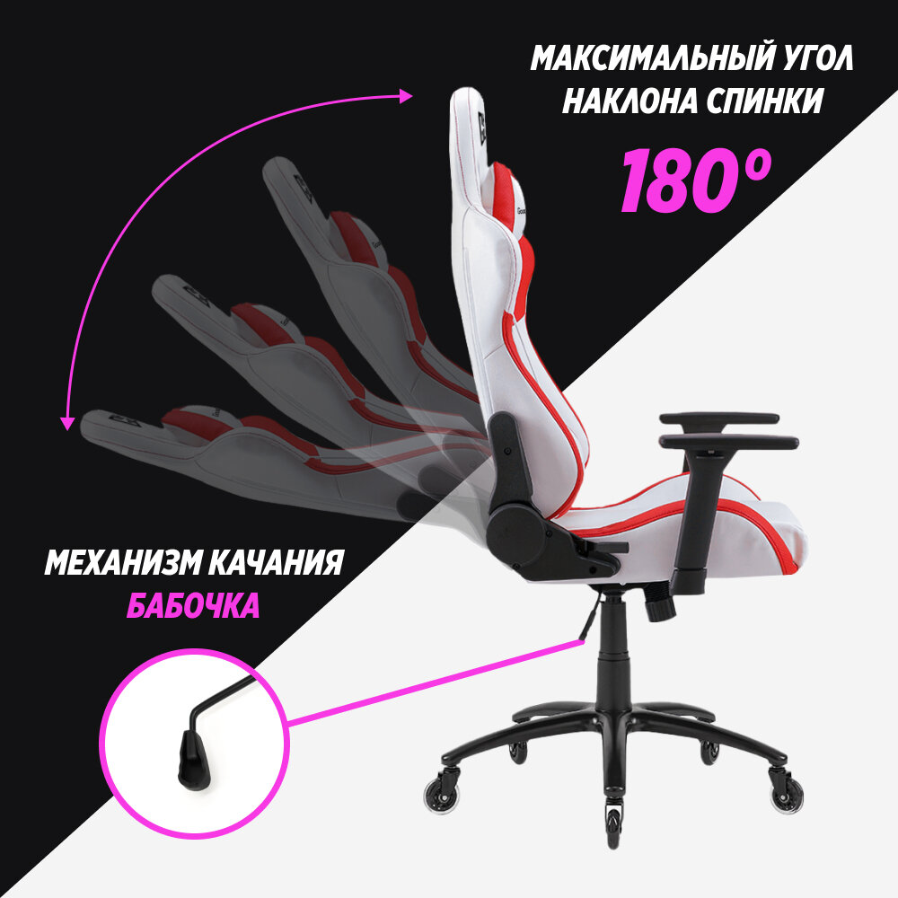 Спинка кресла должна плотно прилегать к спине и оказывать пользователю постоянную поддержку. Поэтому большую часть времени спинка будет находится в вертикальном положении или положении близком к нему. Угол наклона спинки кресла можно изменить, чтобы занять удобное положение, например, во время просмотра видео, а также в других случаях на усмотрение пользователя. Это важное и полезное свойство кресел, которым следует пользоваться разумно, не в ущерб здоровью. Угол наклона геймерских кресел GLHF 3X составляет 180 градусов, с возможностью фиксации положения спинки кресла под любым углом. 3x не заменит кровать, но позволит расслабится в те моменты, когда это нужно.