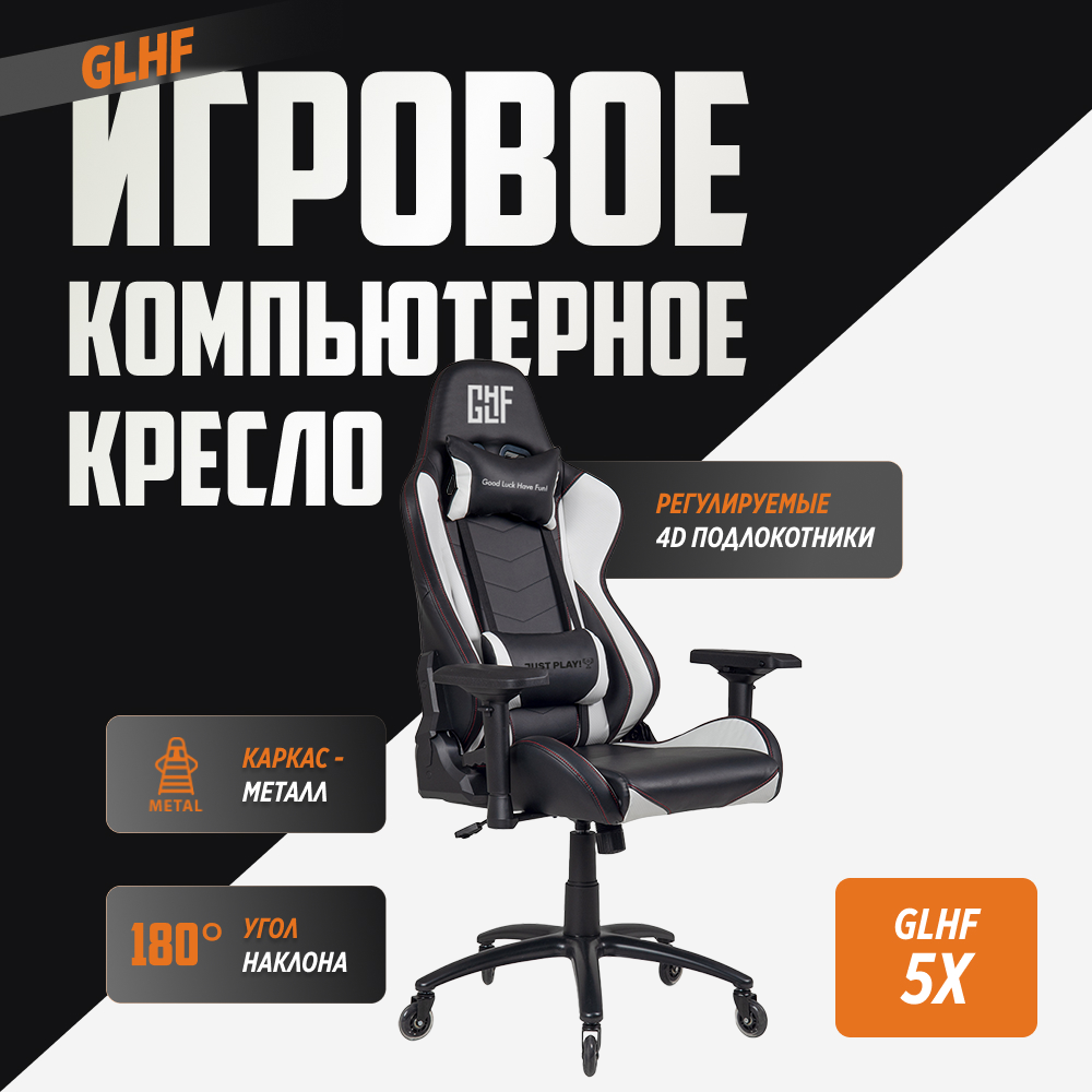 GLHF 5X создано для тех, кто хочет получить максимум от геймерского кресла. Оно сочетает в себе высокую эргономичность и комфорт, надёжные материалы и высокую прочность. Кресло оснащено 4D-подлокотниками, а благодаря газлифту 4-го класса максимальный вес достигает 150 кг, рекомендуемый - 130 кг.