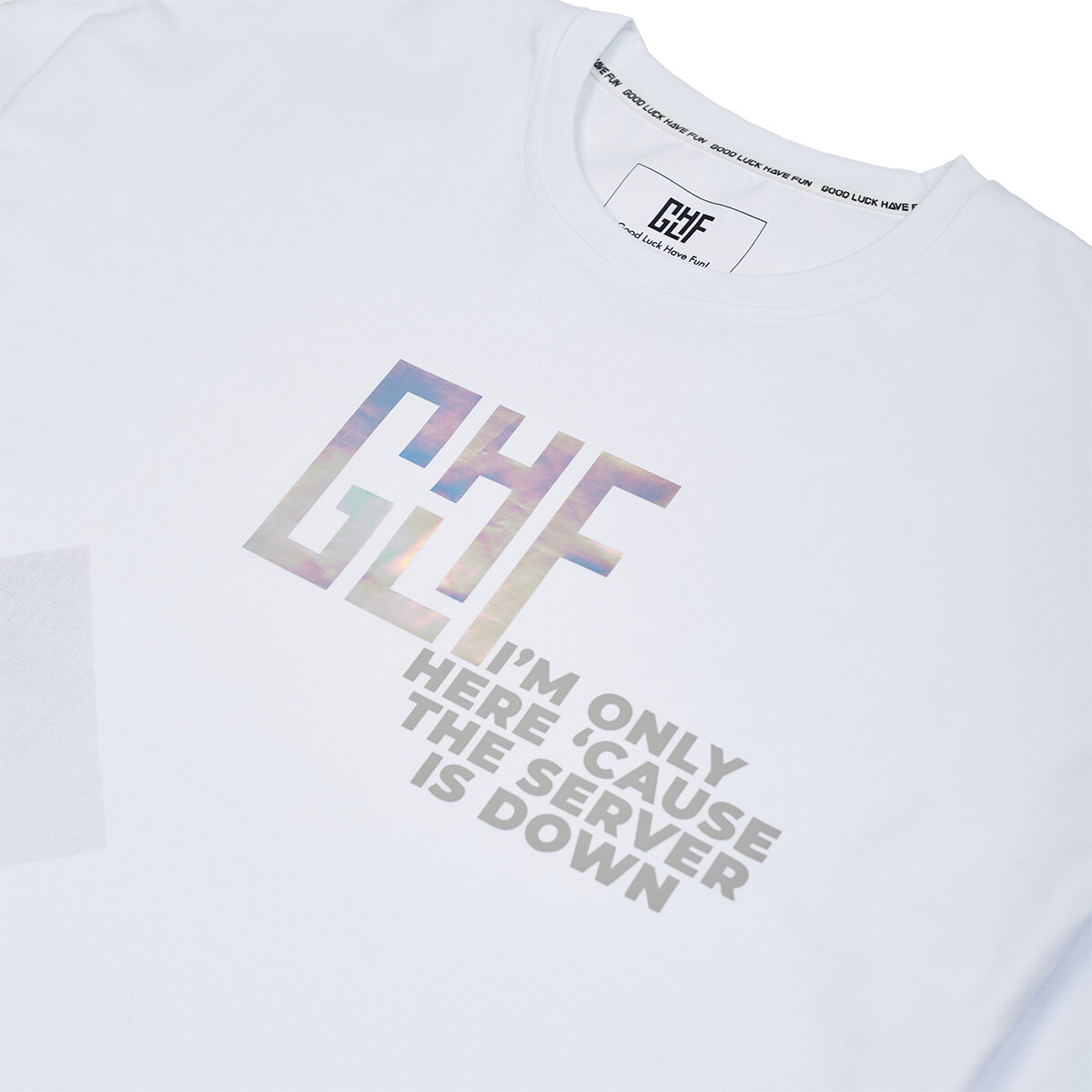Оверсайз футболка - идеальное решение на каждый день. Футболка выполнена из супер приятного материала, не требующего специального ухода. Голографический принт "I'M ONLY HERE 'CAUSE THE SERVER IS DOWN" переводится как "Я здесь только потому что сервер упал" будет по достоинству оценена теми кто не может представить свою жизнь без интернета, компьютера или компьютерных игр.