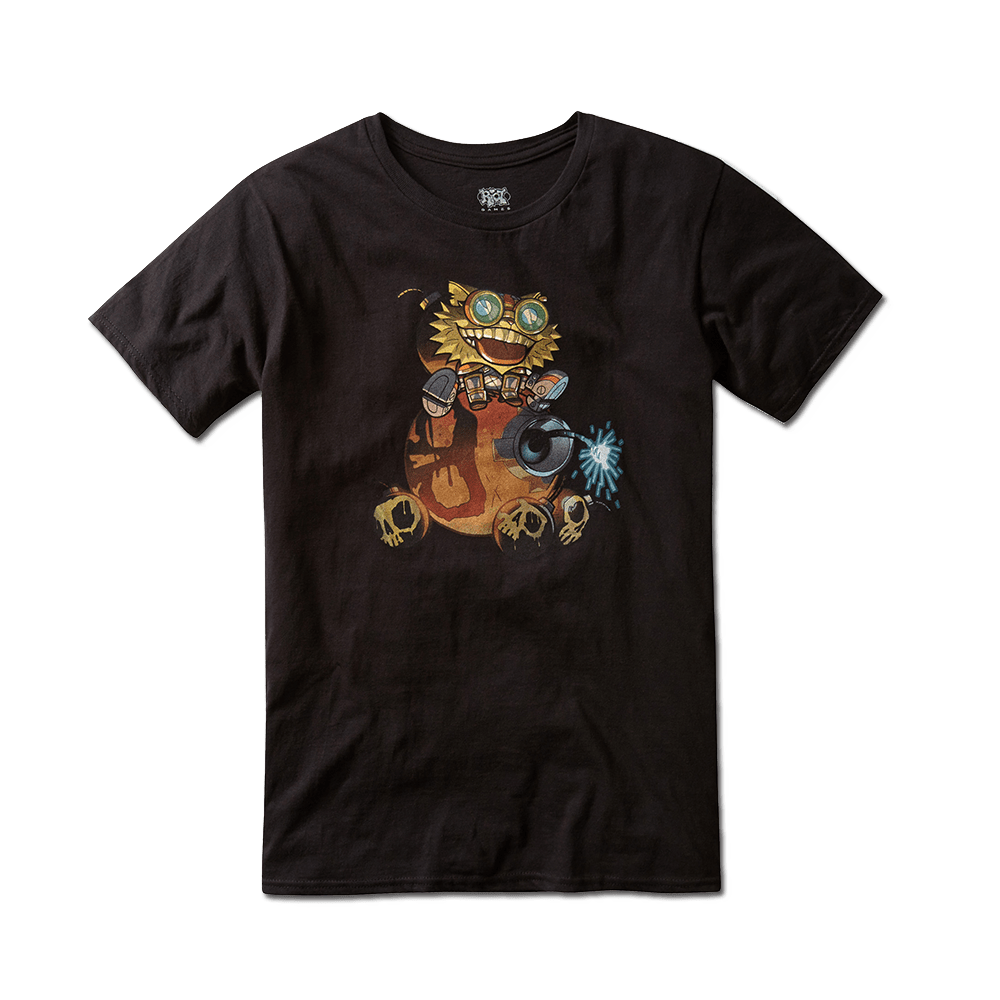 Когда мы спрашивали Зиггса, как бы он хотел быть изображенным на этой футболке, он попросил не изображать его психом. Извини, Зиггс, это правда лучший вариант.