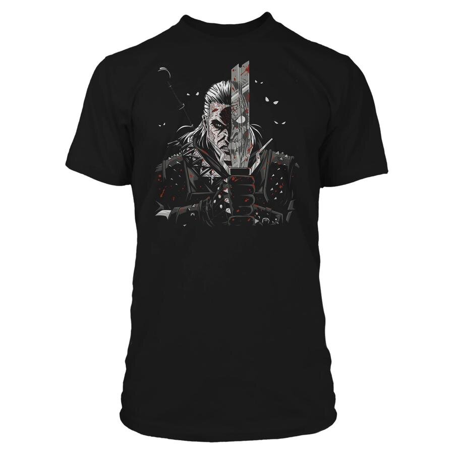 Чёрная футболка по мотивам игры The Witcher 3 позволит выделиться среди других благодаря нанесённому на ней мрачному рисунку ведьмака Геральта. Она очень лёгкая и сделана из 100% мягкого хлопка.