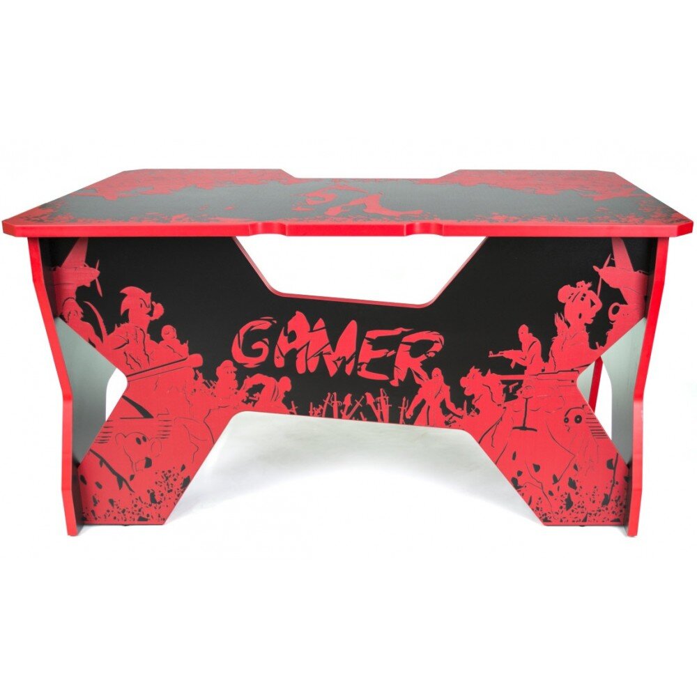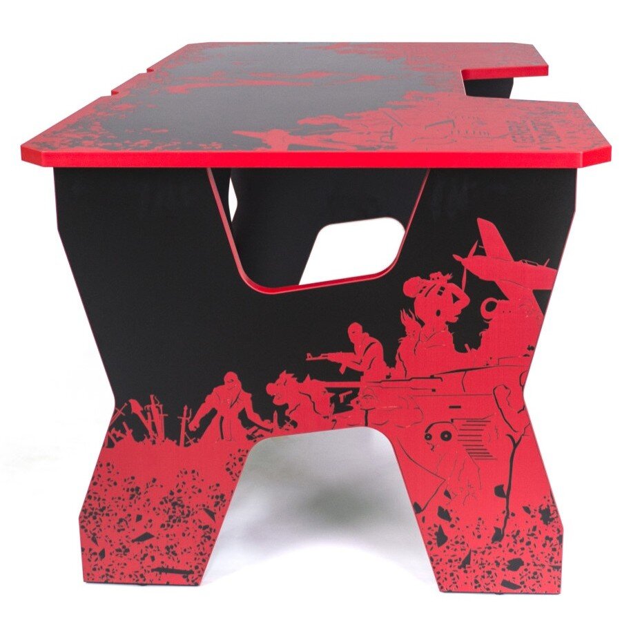Эргономичная ниша - можно положить локти на стол, предотвратив затекание рук и развитие туннельного синдрома.Позволяет комфортно расположиться рядом с компьютером, и снимает нагрузку с плечевых суставов геймера, что позволяет не снимать руки с клавиатуры много часов подряд и предотвращает развитие туннельного синдрома. При этом размеры ниши подобраны таким образом, чтобы в нее при необходимости входила спинка стандартного игрового кресла, что позволяет с комфортом играть худощавым геймерам. Большой вырез в царге стола обеспечивает возможность при необходимости вытянуть затекшие ноги и немного размяться, не вставая с места.