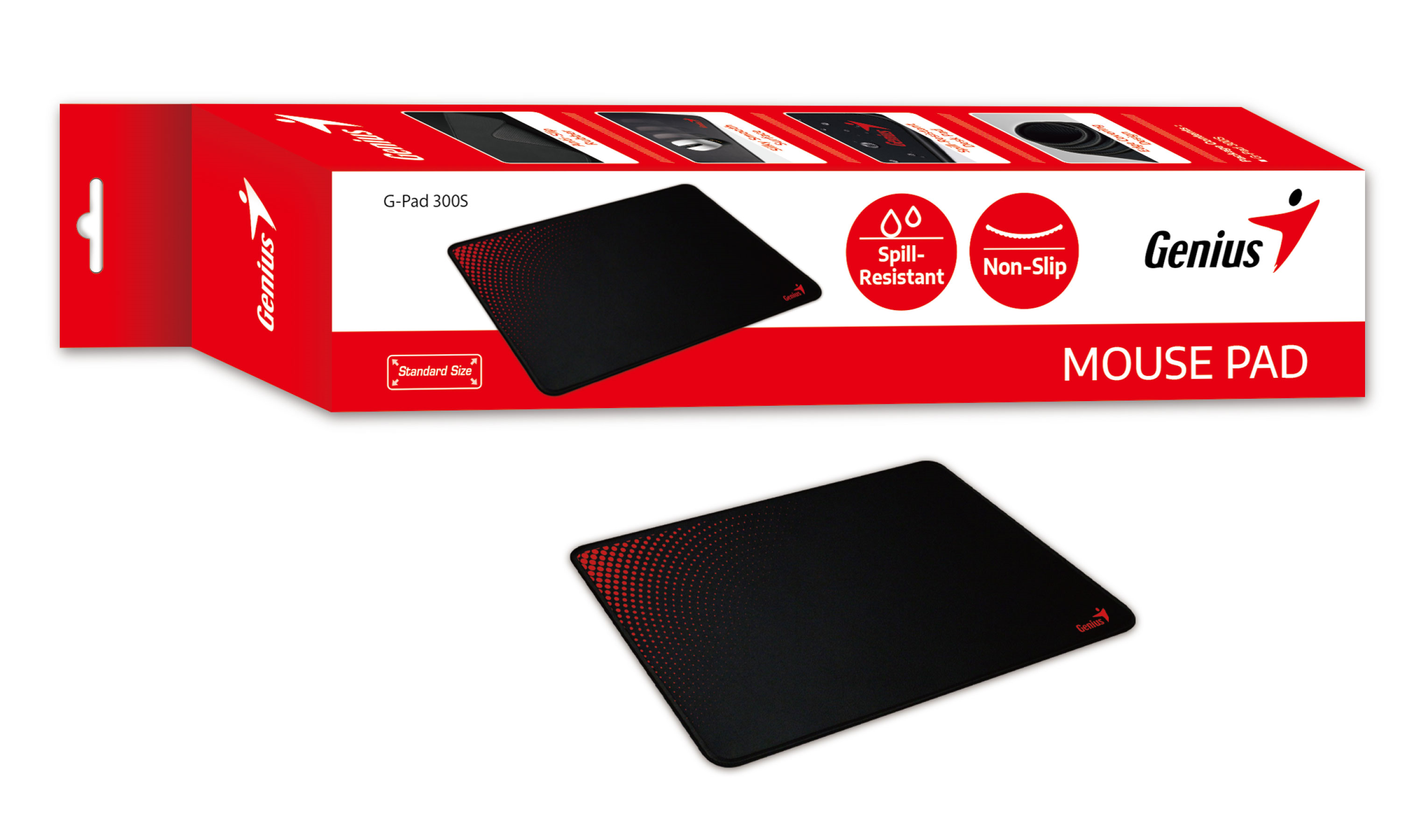 Genius G-Pad 300S подходит как для лазерных, так и для оптических мышей. Шёлковистая гладкая поверхность обеспечивает плавное движение любой мыши. Коврик устойчив к разливу жидкости, а поверхность устойчива к протеканию жидкости. Изделие легко чистить. Противоскользящее резиновое покрытие. Плотное прорезиненное покрытие не даёт коврику скользить. Дизайн с обработанными краями. Края коврика обработаны дополнительной строчкой.